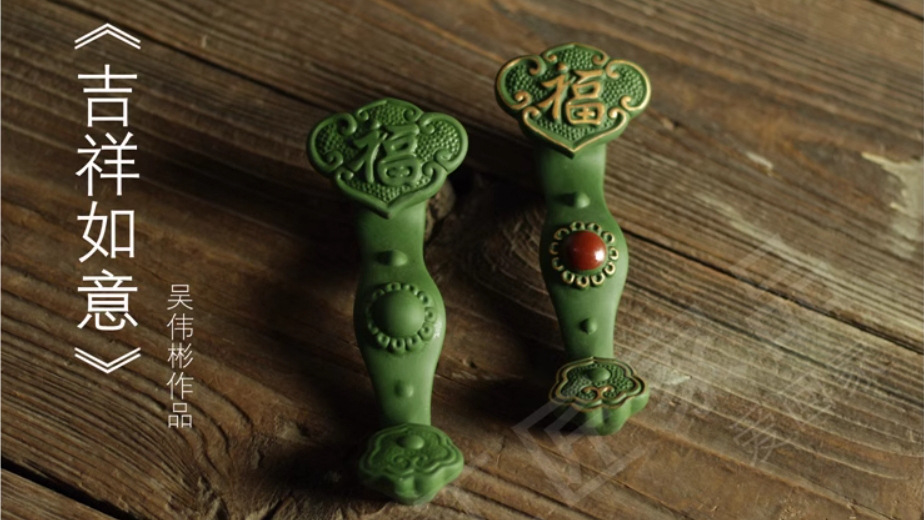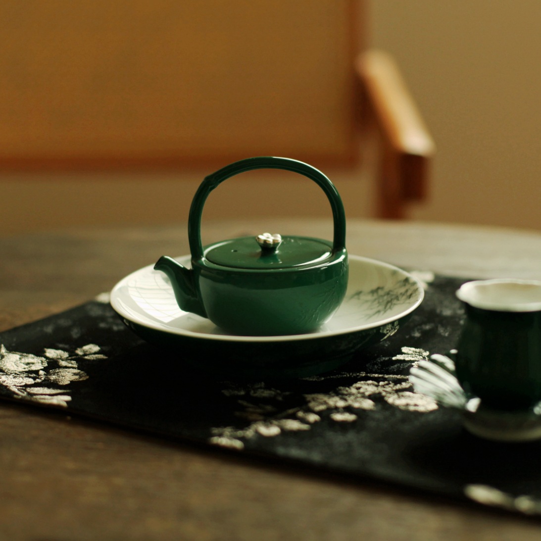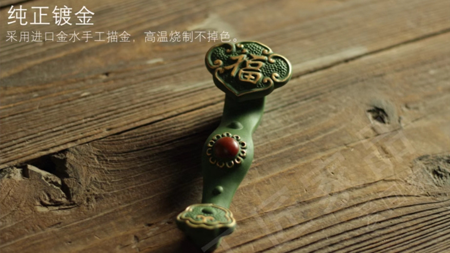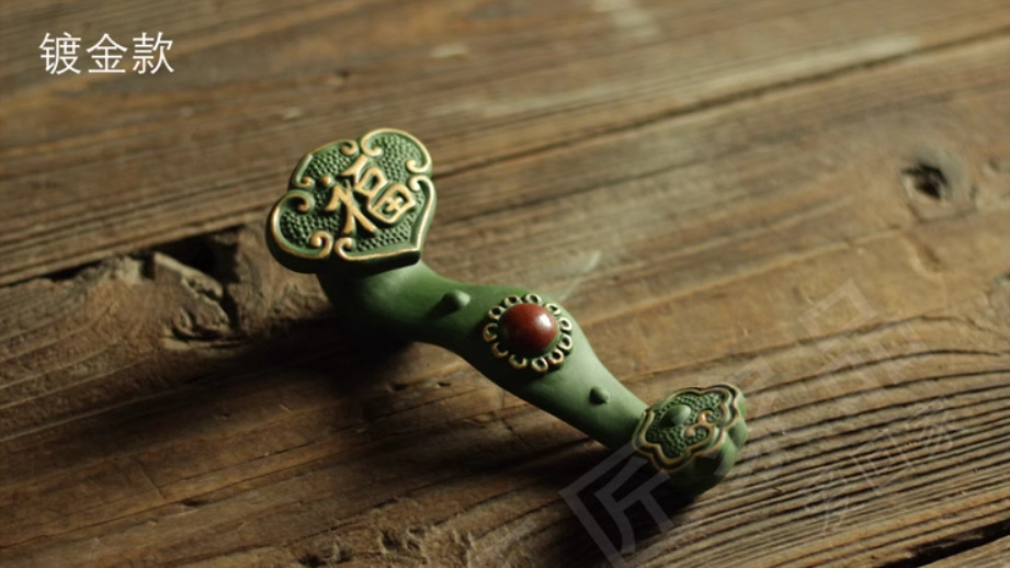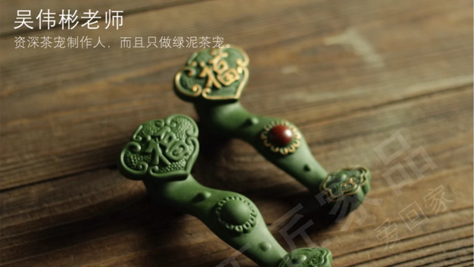 竹叶绿古竹提梁壶泡茶壶复古祖母绿家用茶舍陶瓷景德镇工夫茶具