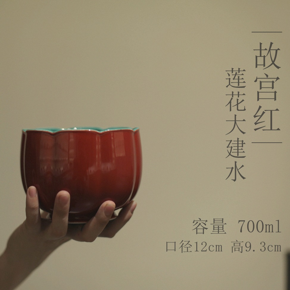 故宮紅蓮花大建水茶滓斗杯洗茶温酒壺承紅釉景徳鎮陶磁器茶器