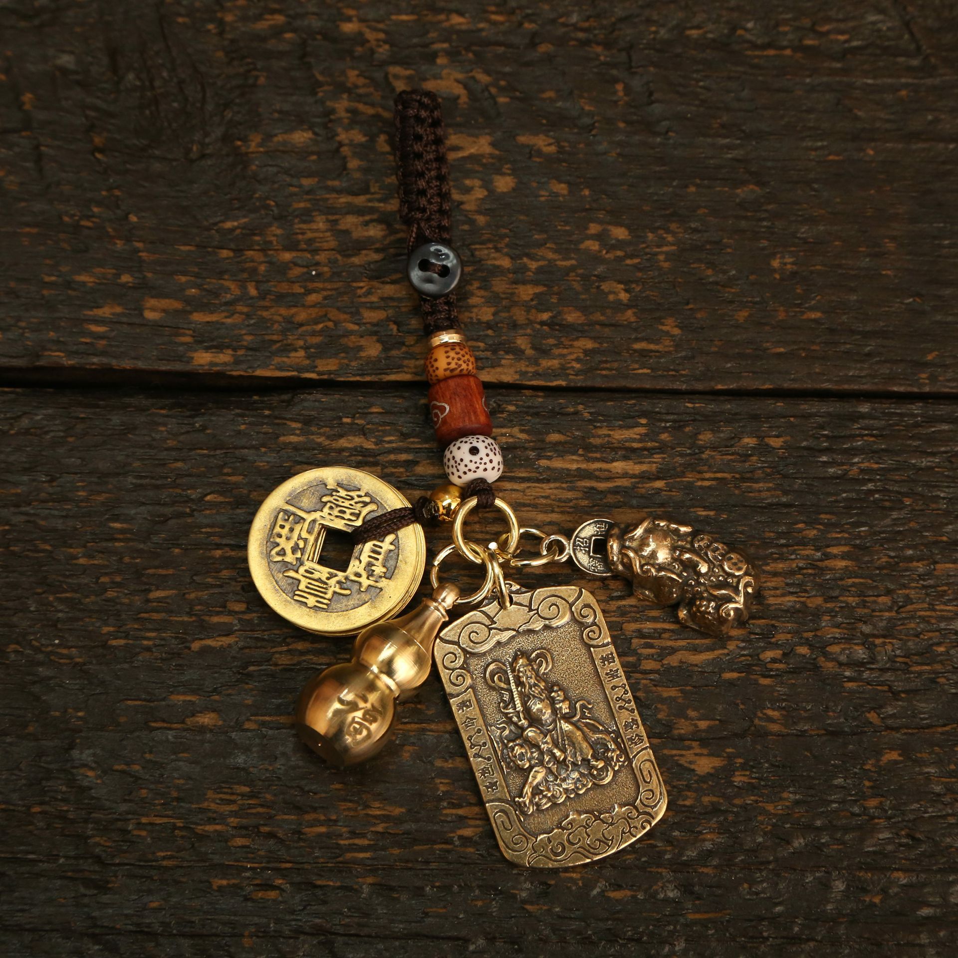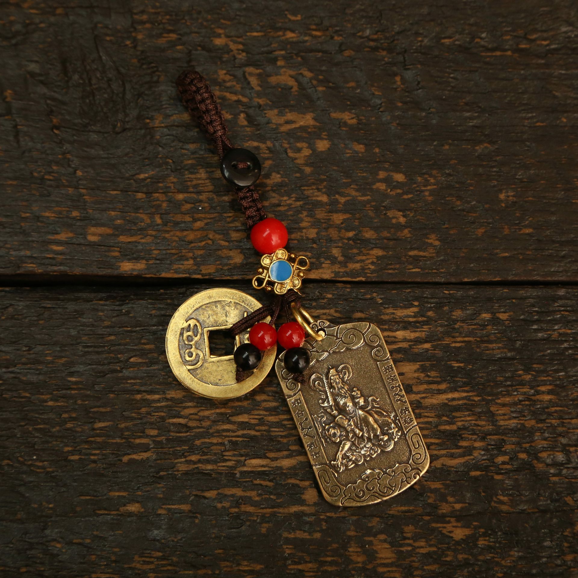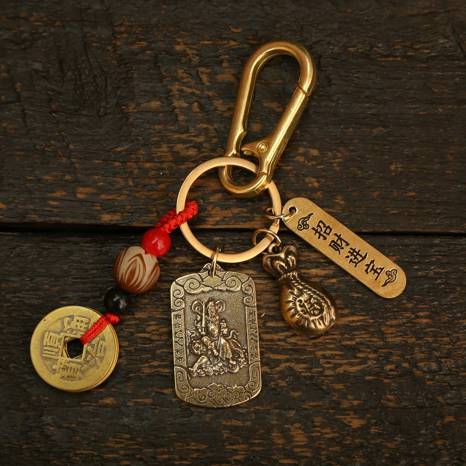 【ミスターおすすめ】銅武の富の神趙公明の富と宝を引き寄せるトークン、五帝のお金と車のキーホルダーペンダント