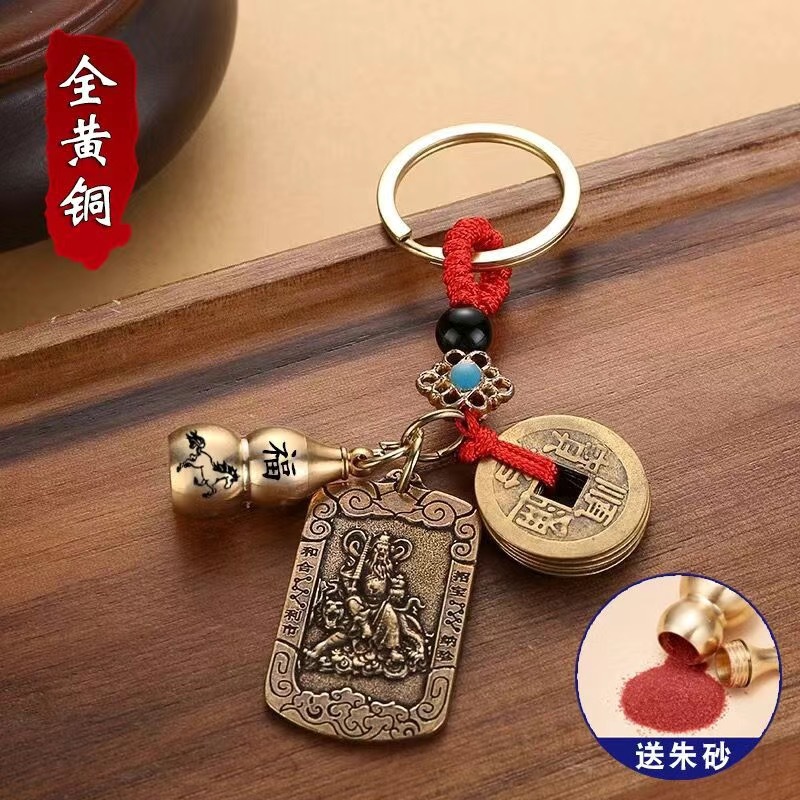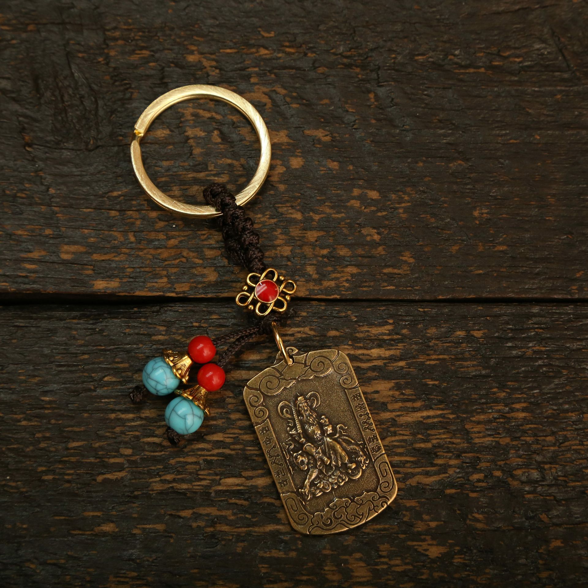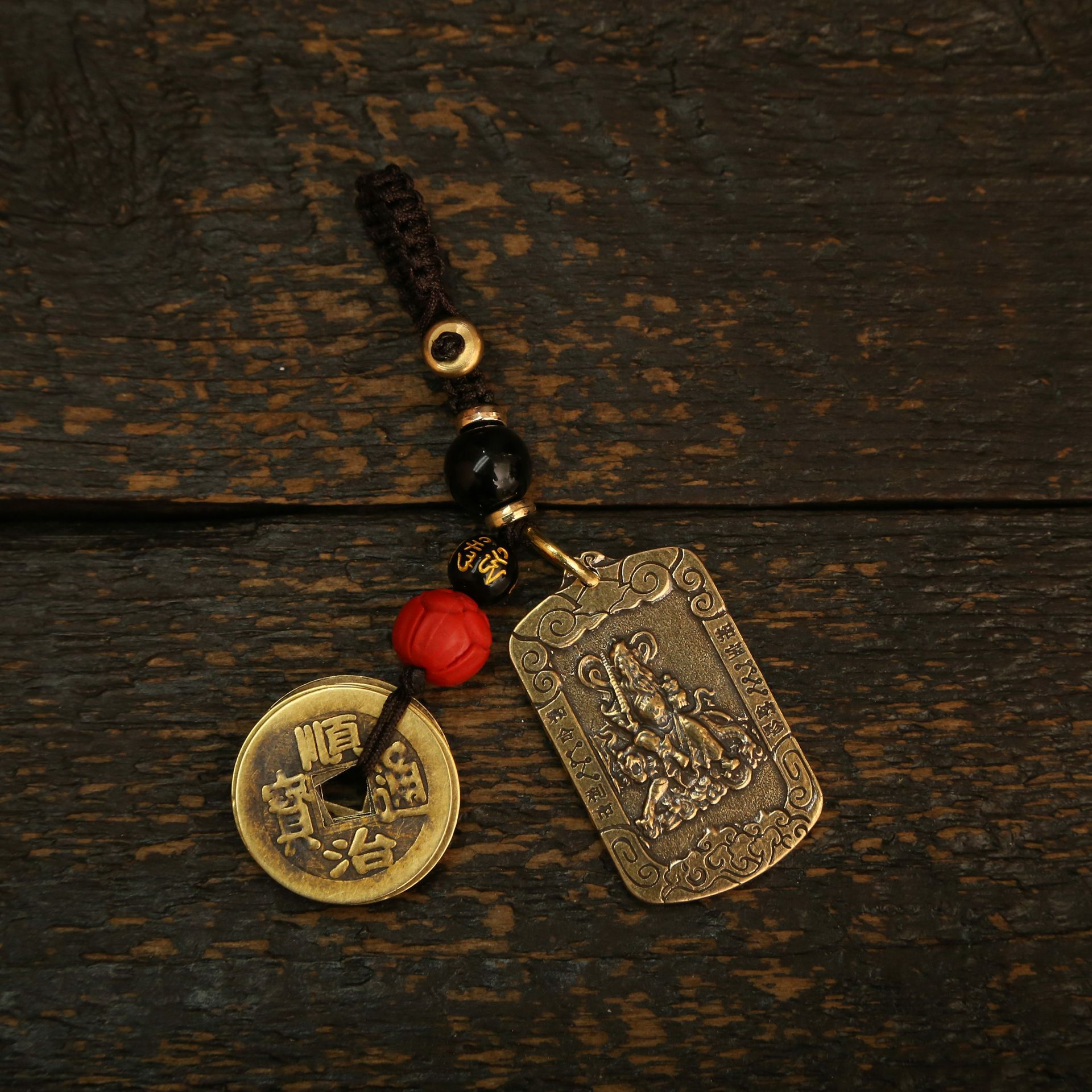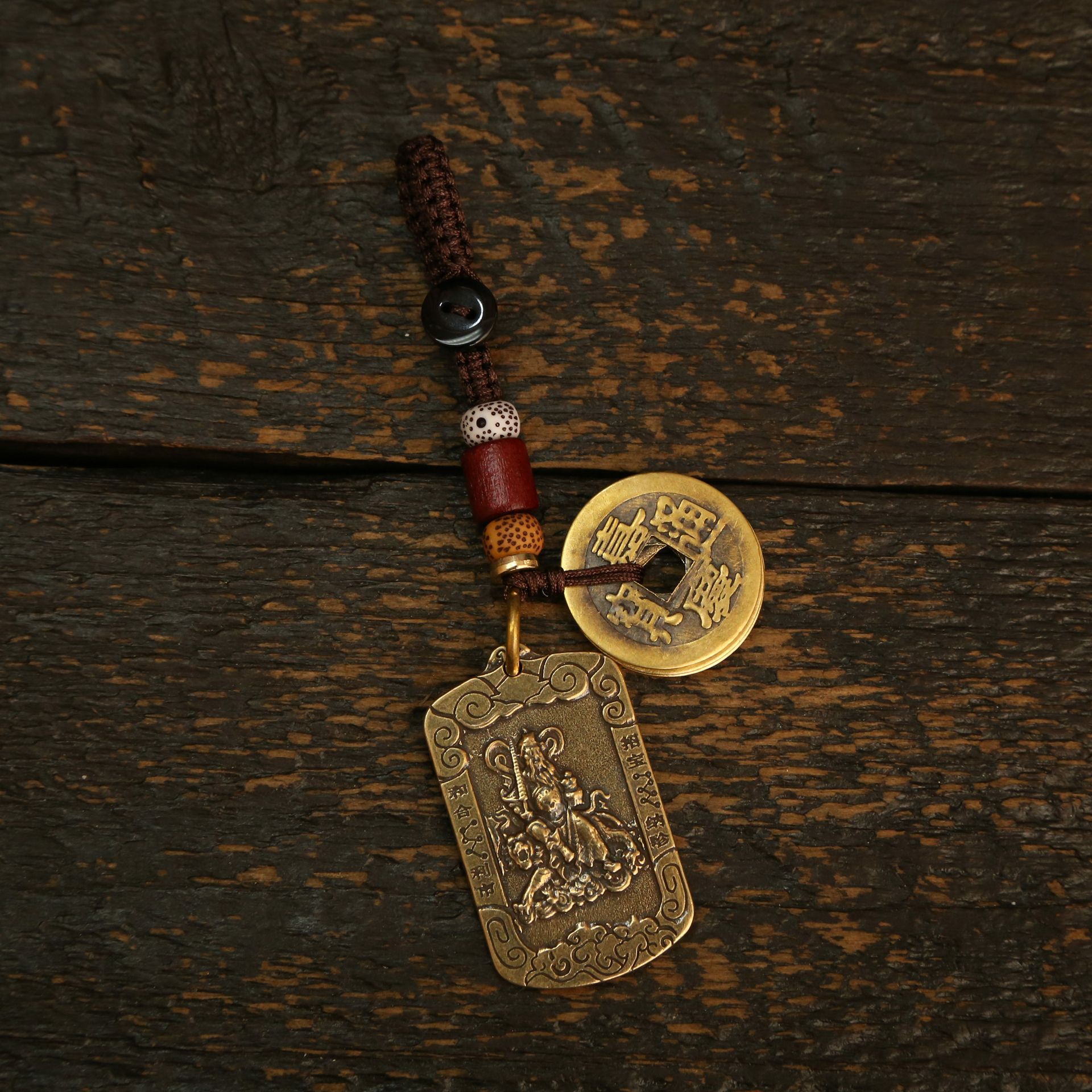 【ミスターおすすめ】銅武の富の神趙公明の富と宝を引き寄せるトークン、五帝のお金と車のキーホルダーペンダント