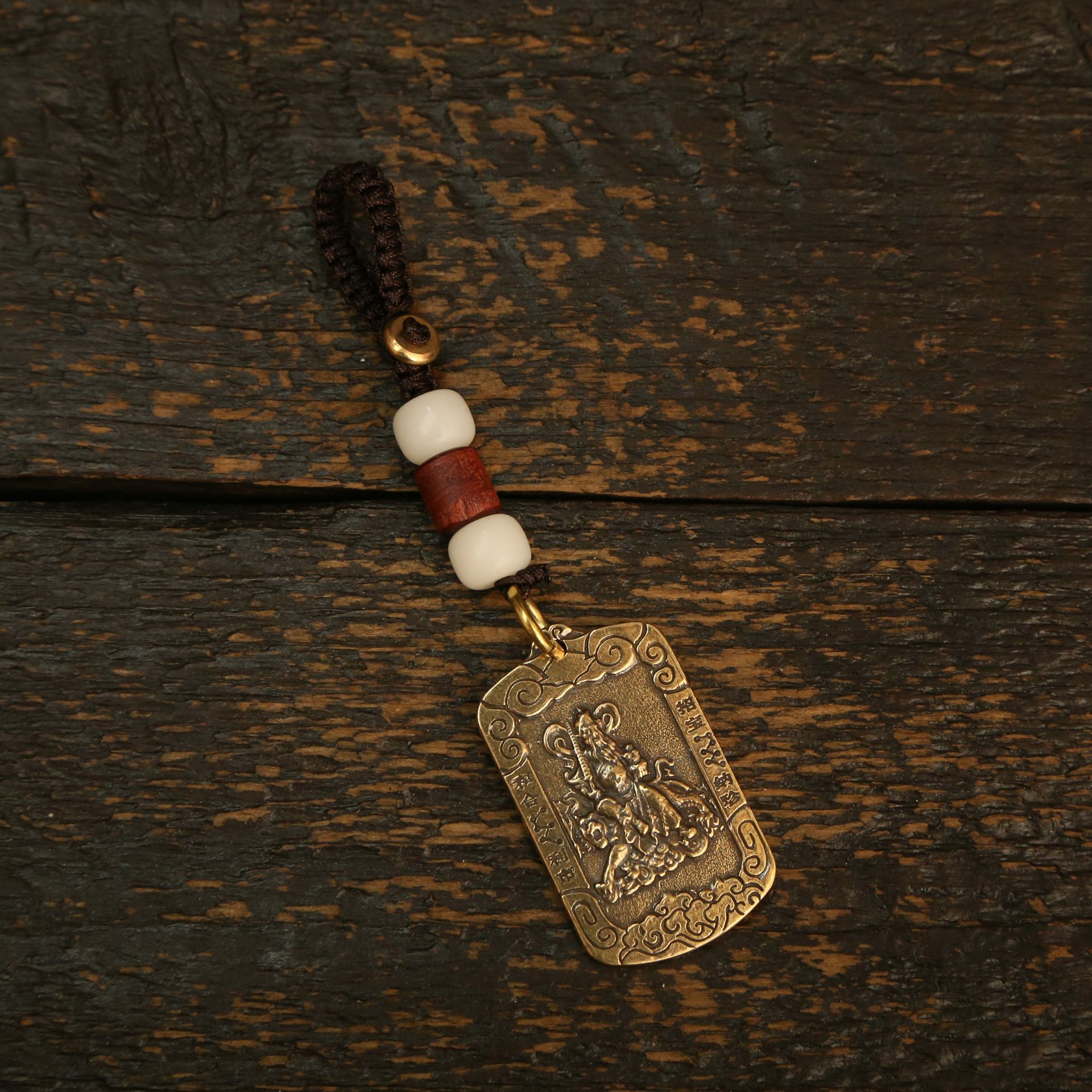 道家アクセサリー真鍮武財神趙公明トークンペンダント卸売り携帯車の鍵ストラップ銅メダルストラップ