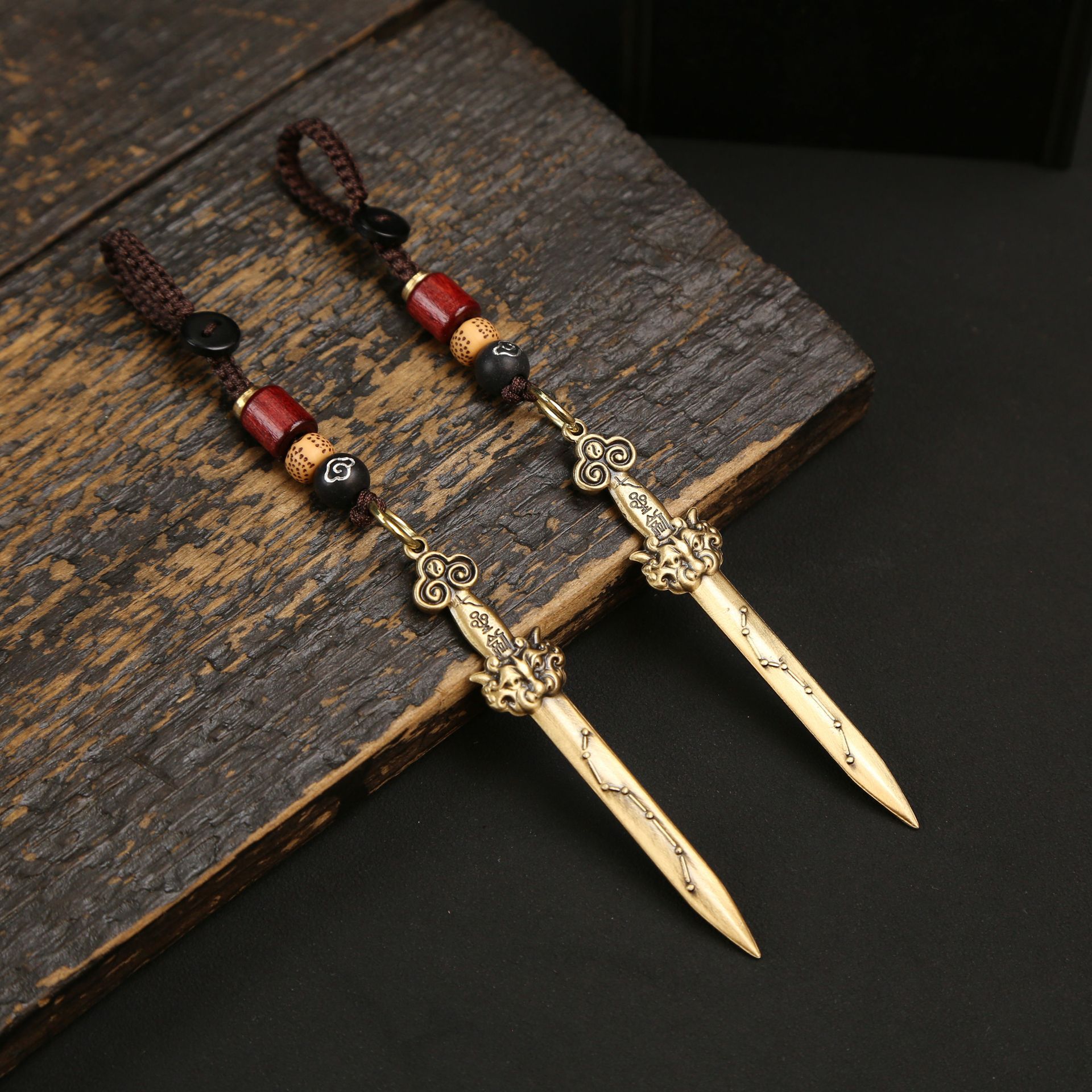 黄銅七星剣の車のキーホルダーは復古して古い工芸品をします。