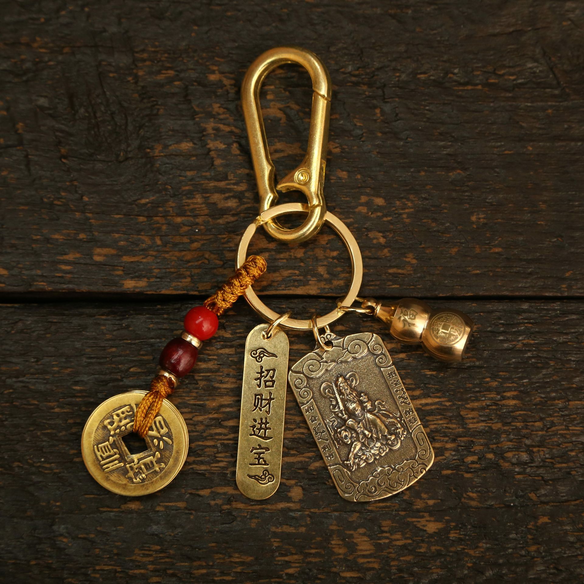 黄銅趙公明武財神招財令五帝銭ひょうたんキーホルダーペンダント自動車キーペンダント