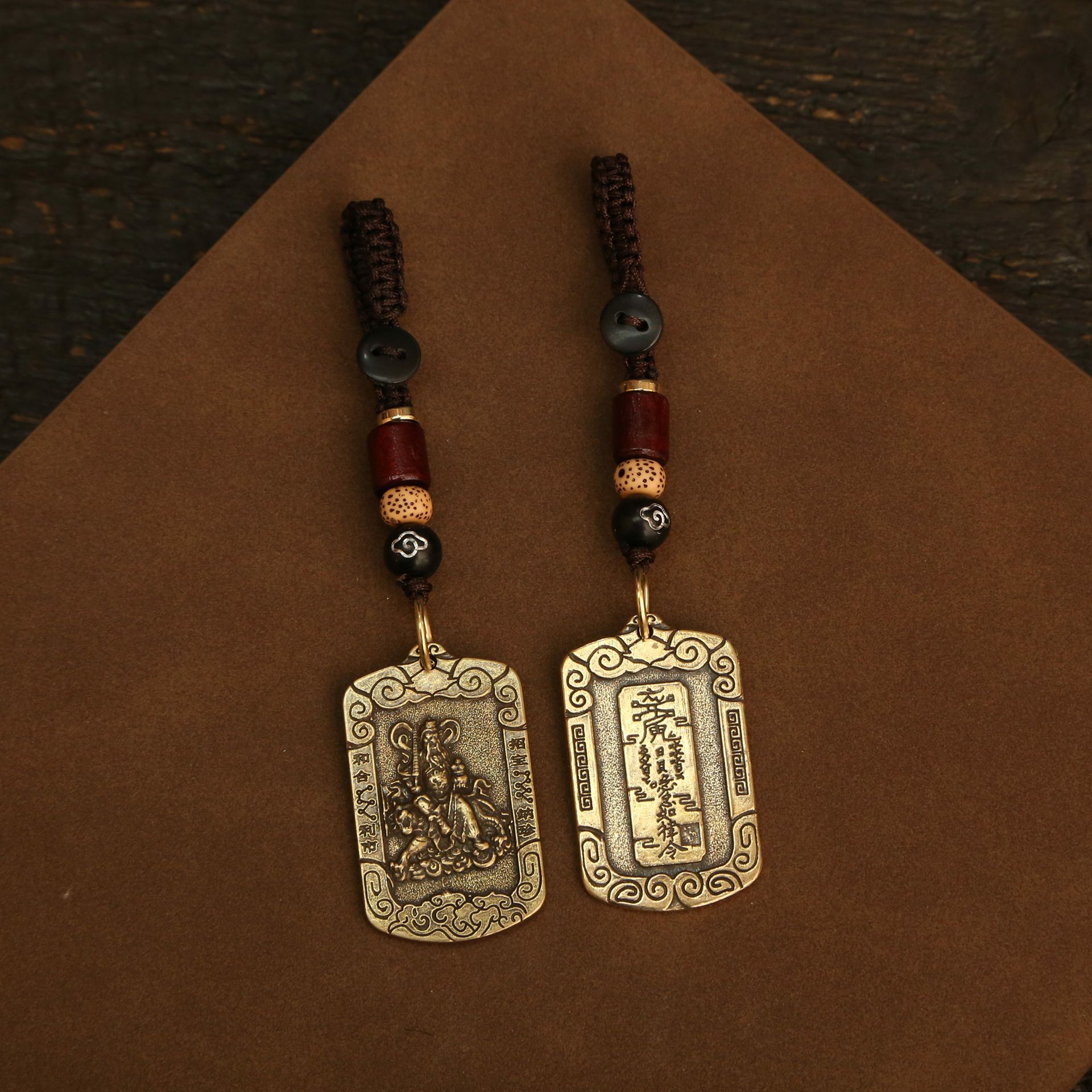 新しい真鍮の平和と幸運の両面ペンダント DIY ペンダントキーチェーン天官祝福キーホルダー