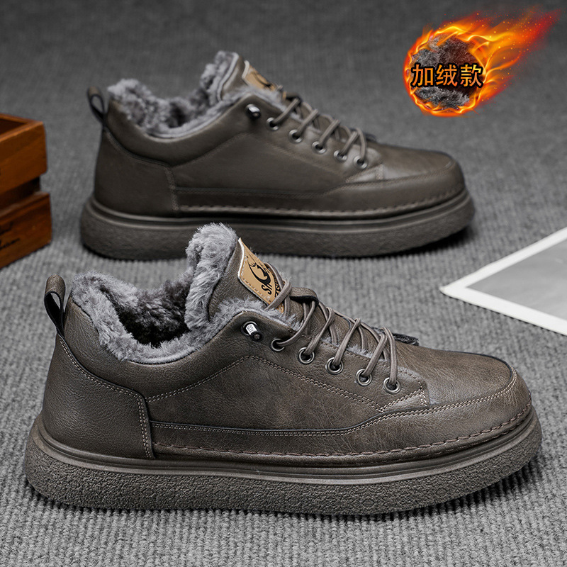 冬の男の靴とベルベットのコックの靴の男の韓国版は滑り止めの黒色の革靴に合わせてカジュアルで厚い保温の綿の靴の男を配合します。