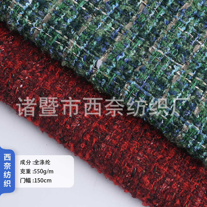 全ポリエステル小香風シャトル織り粗紡花はファッション生地の格子毛は生地の現物卸売りです。