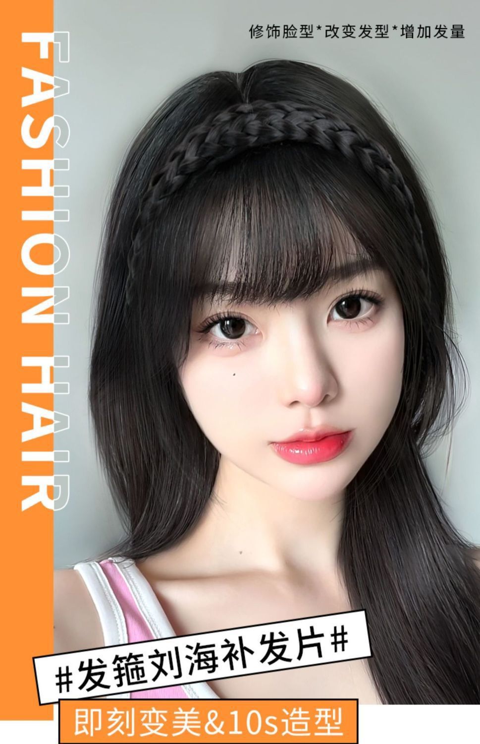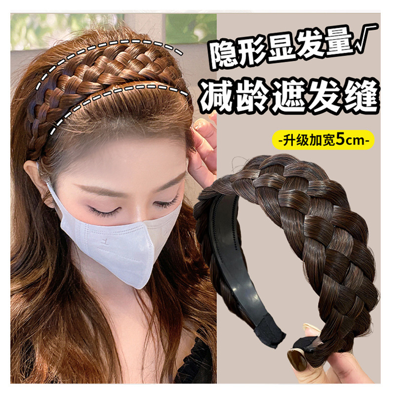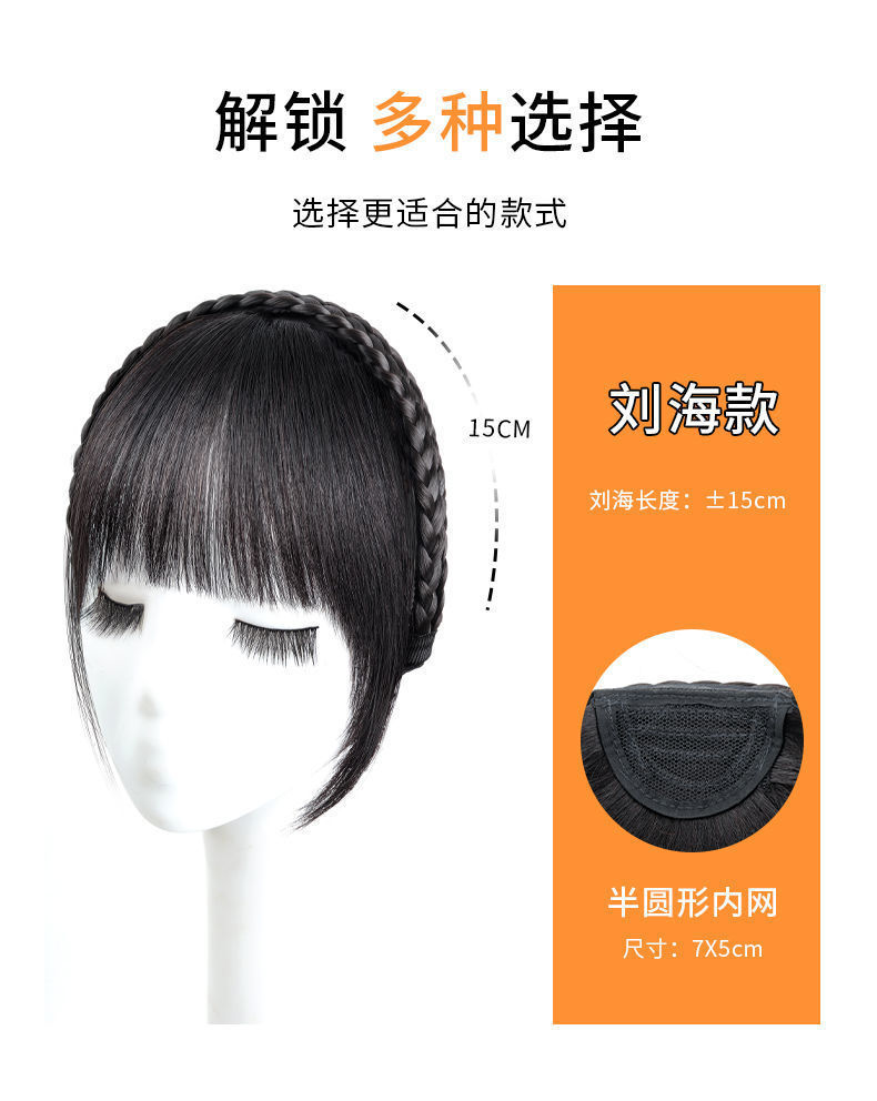 髪のカチューシャ前髪一体かつら再髪片女性の麻花のお下げのシミュレーション前髪のない魚の骨のカチューシャ再髪の半分のカバー