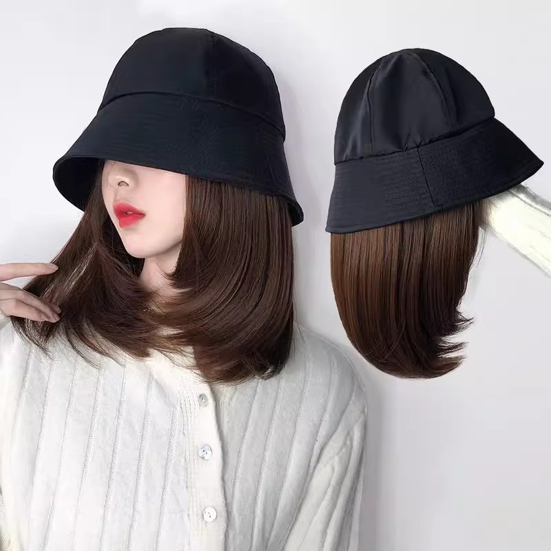 日本のかつらの帽子の一体の女性の春夏のネットの赤いバケツの漁師の帽子の中で長い髪の中で全体の頭のカバーの鎖骨のストレートな髪を掛けます。