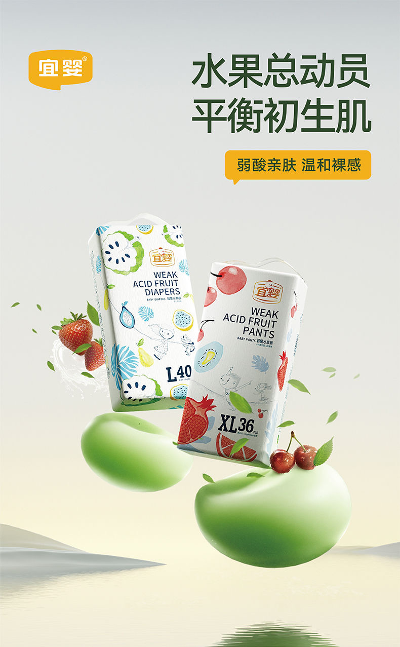 メーカーは赤ちゃんの弱酸性果物の紙おむつを提供しています。