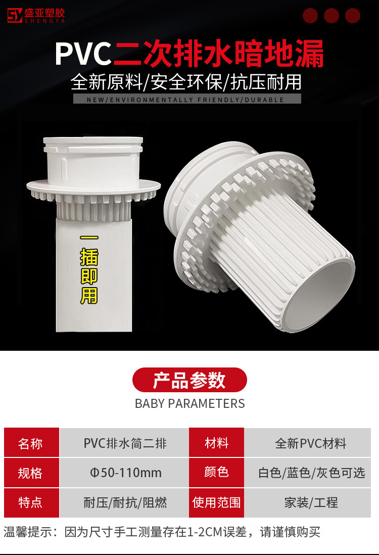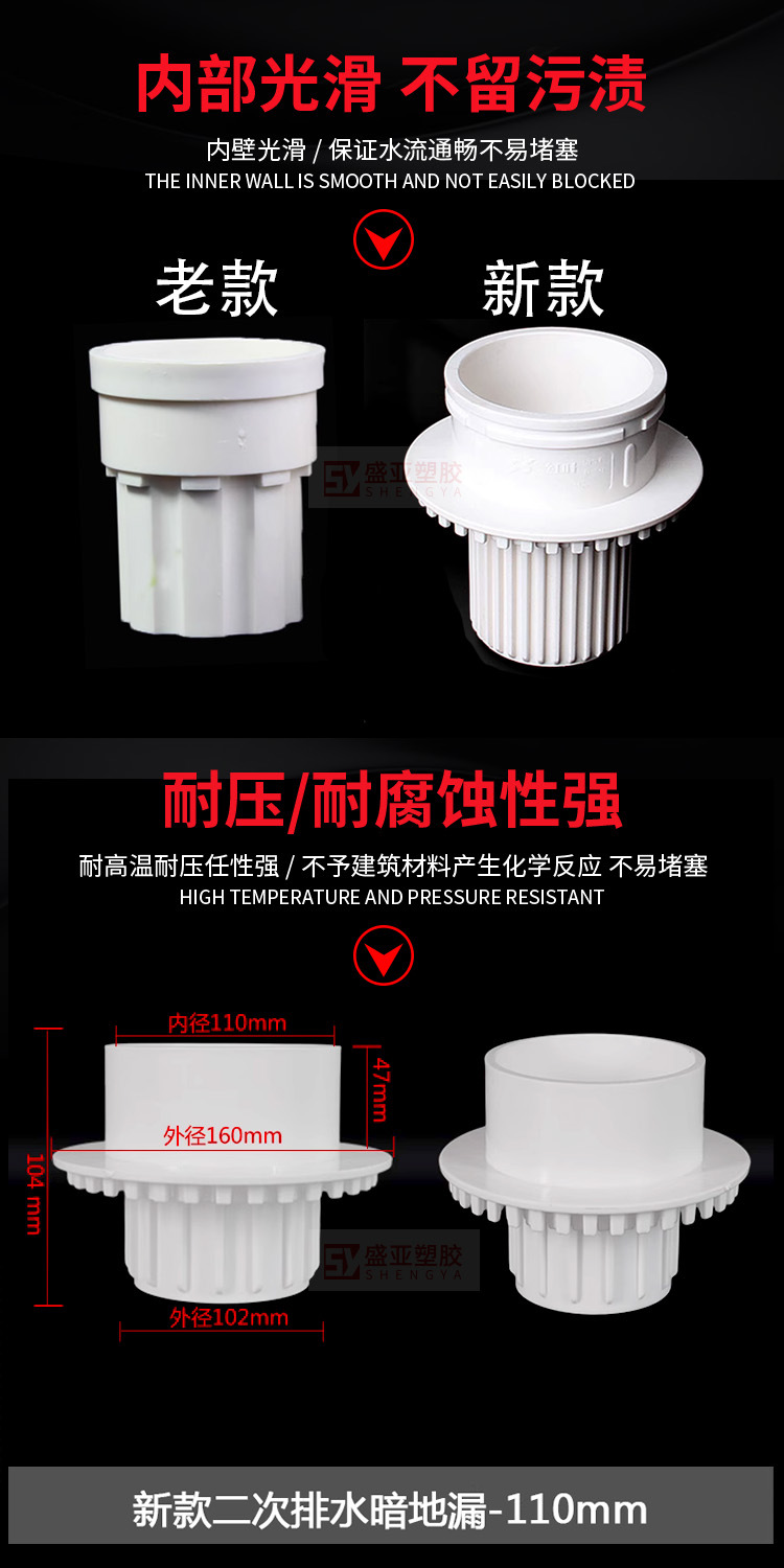 Pvc二次排水は暗くてトイレの台所に漏れています。
