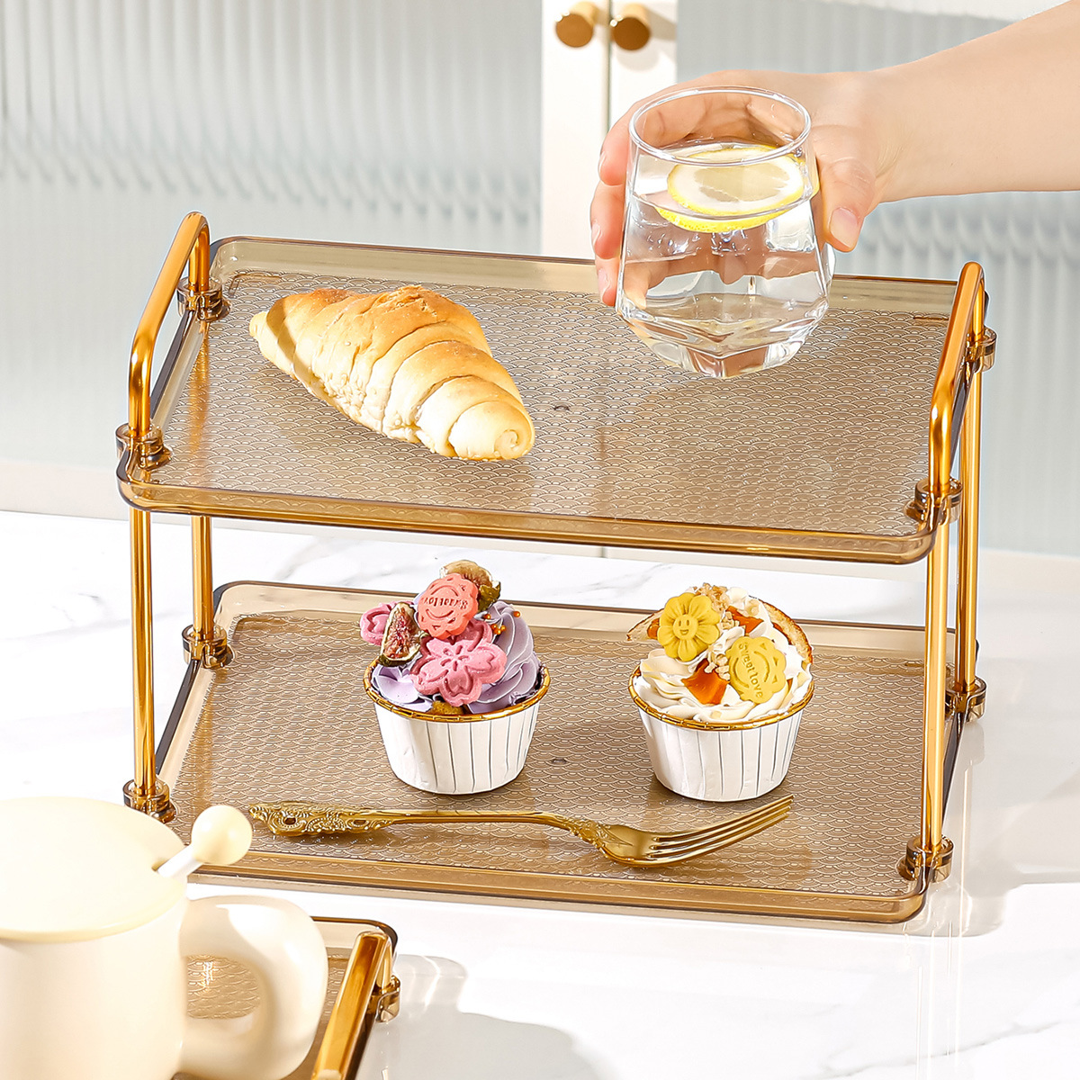 高颜値アスファルトトレイ家庭用リビングルーム茶何枚か茶器カップ茶皿長方形二重果物収納皿