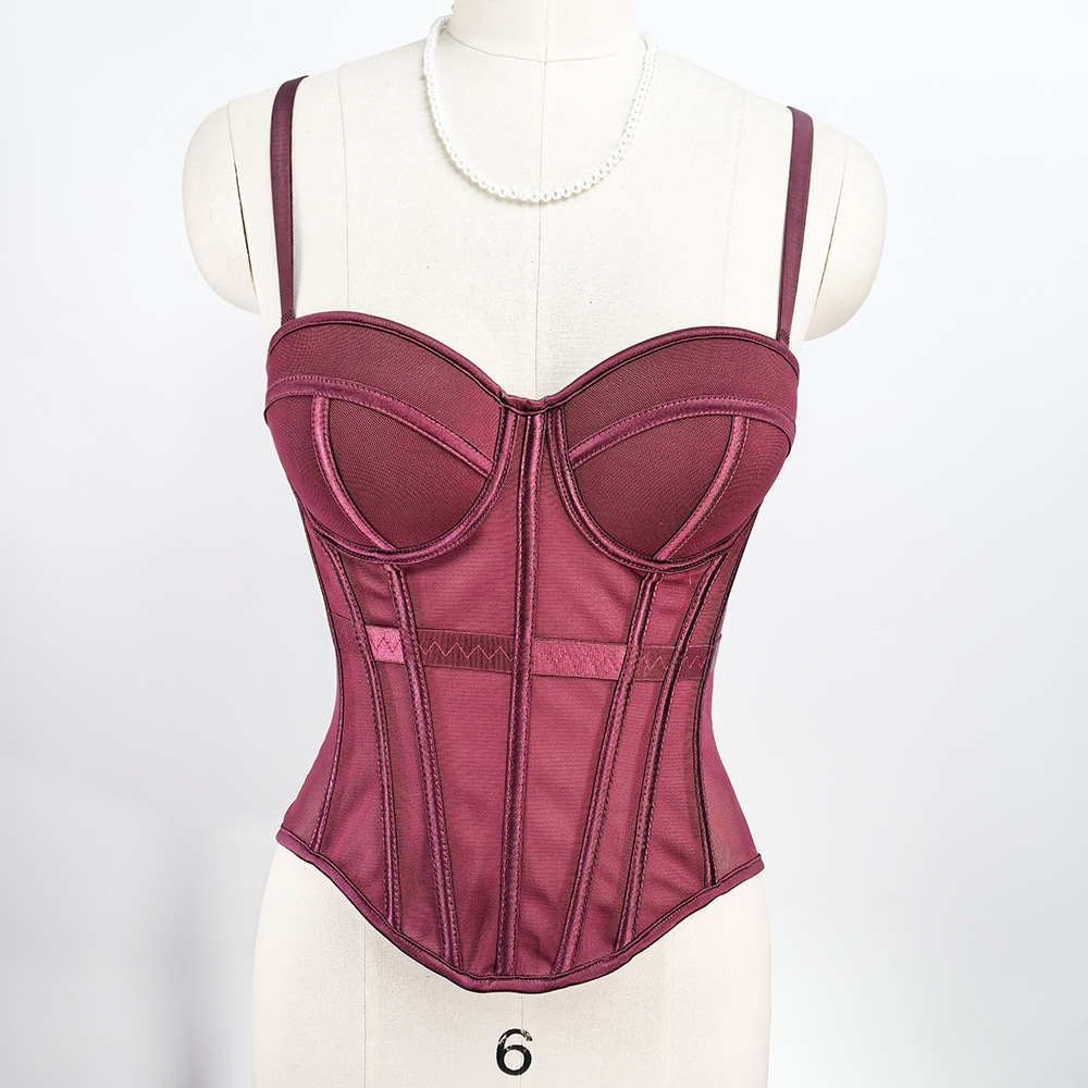 外贸欧美网纱鱼骨胸衣女设计感辣妹线条撞色束腰显瘦吊带背心内搭