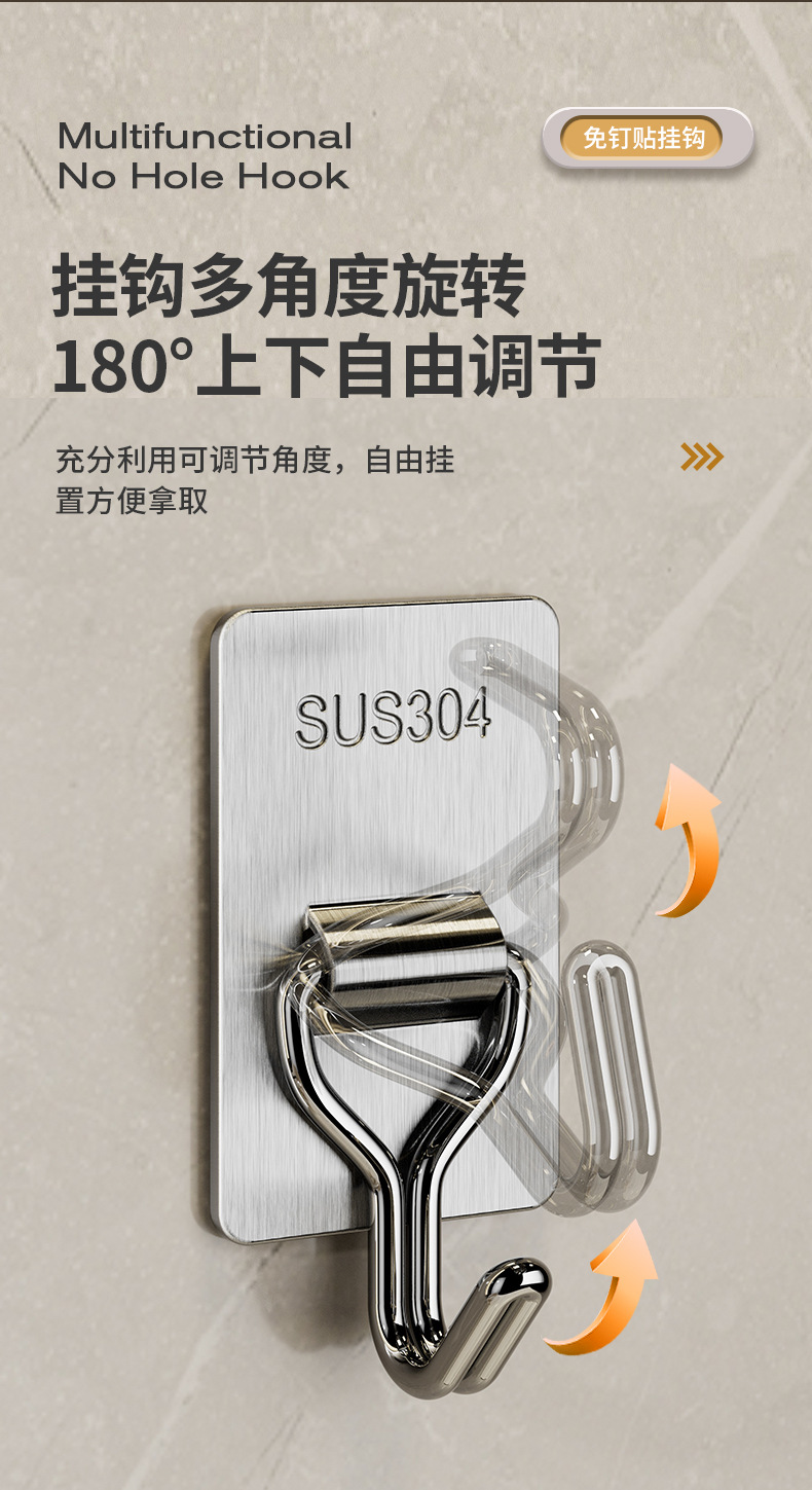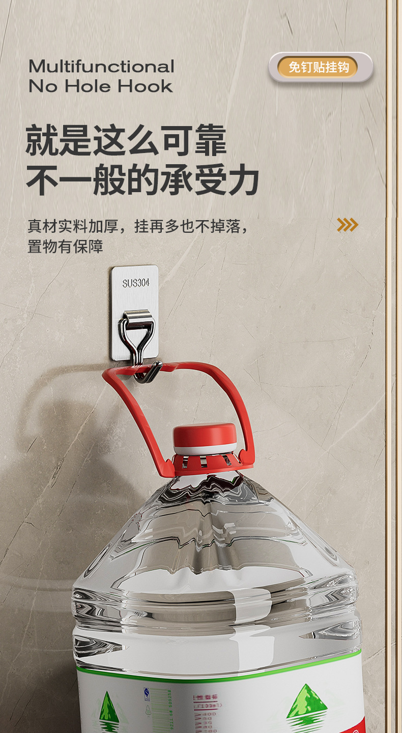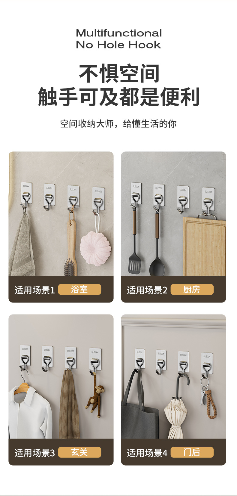 ステンレスの強力なフックは非常に強いです。台所の寮の壁の後ろにフックを掛けます。穴を開けないでください。