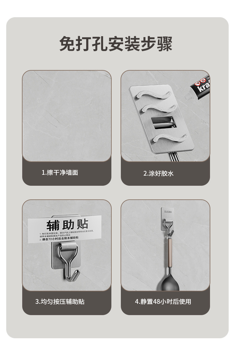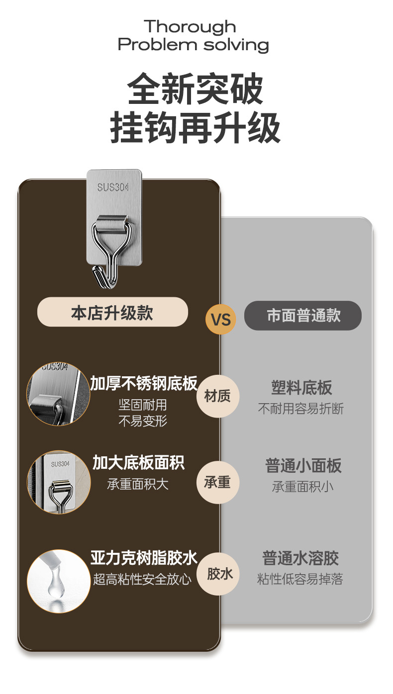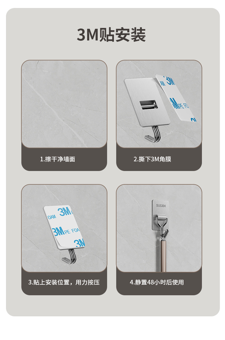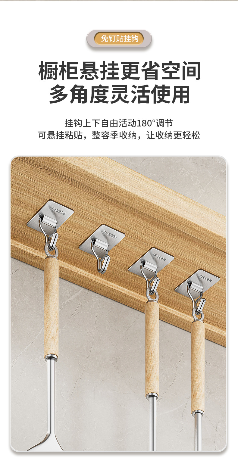 ステンレスの強力なフックは非常に強いです。台所の寮の壁の後ろにフックを掛けます。穴を開けないでください。