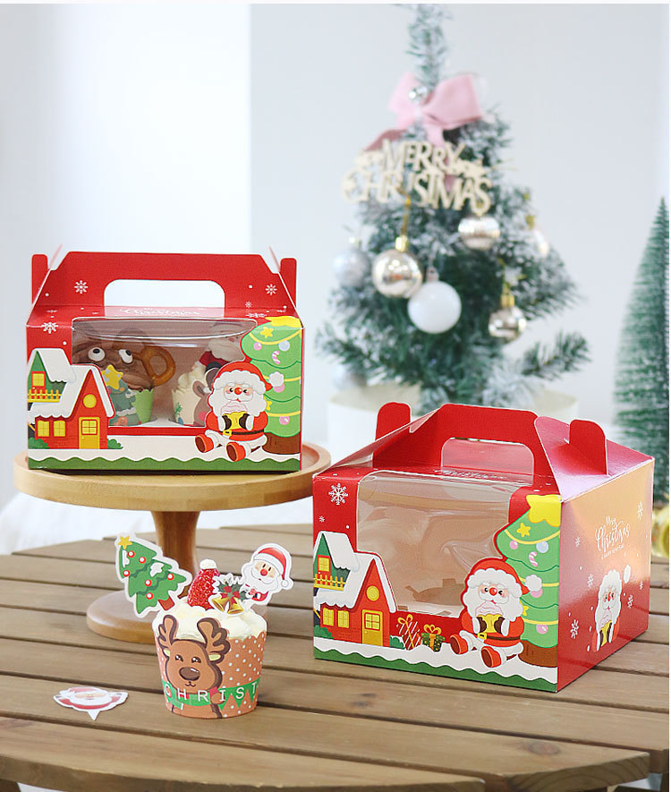クリスマス1粒入りの手提げ窓紙コップケーキ包装箱マフィン箱卵箱焙煎スイーツ包装箱
