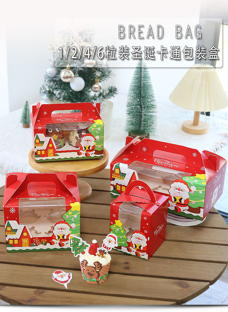 圣诞节纸杯蛋糕盒高档烘焙杯子蛋糕包装盒马芬杯手提开窗甜品盒子