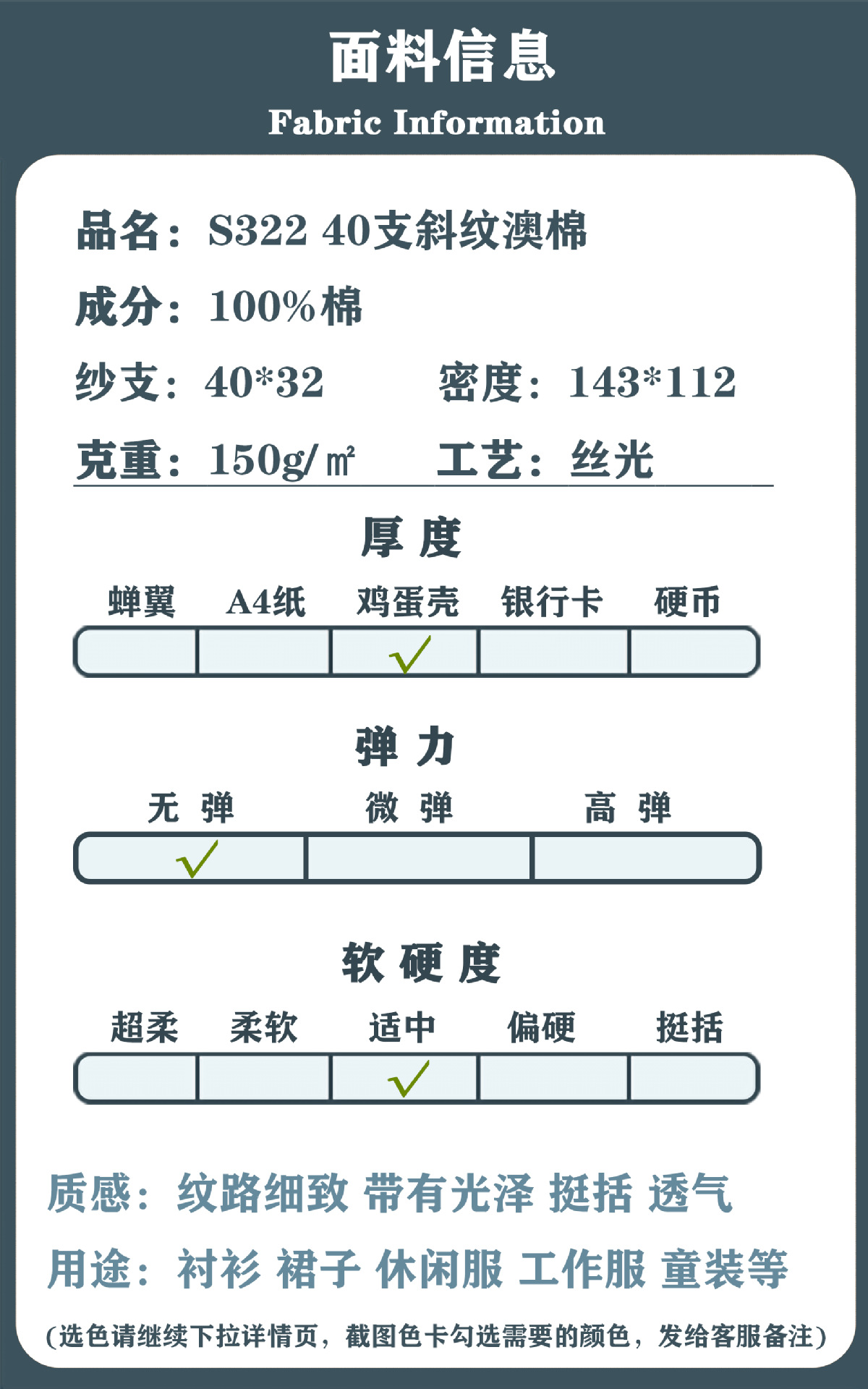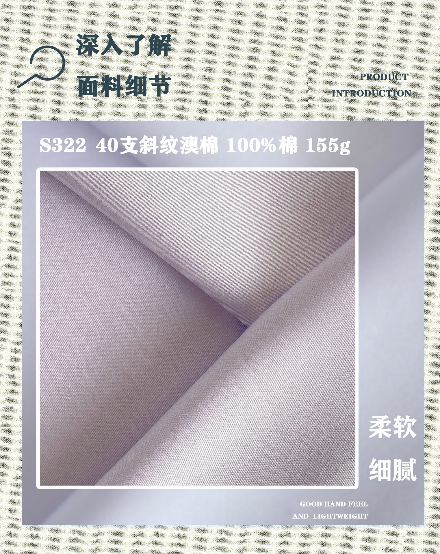 155グラム40本のオーストラリア綿は、シルク綿のツイル生地の無地ワンピースのシャツ生地に似せています。