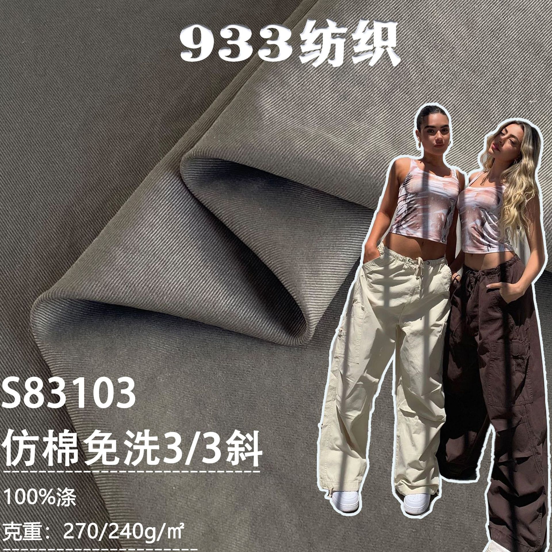 270g 全ポリエステル綿風33斜ポリエステル生地 カジュアルパンツ、カーブパンツ素材 超柔らか、洗濯不要生地