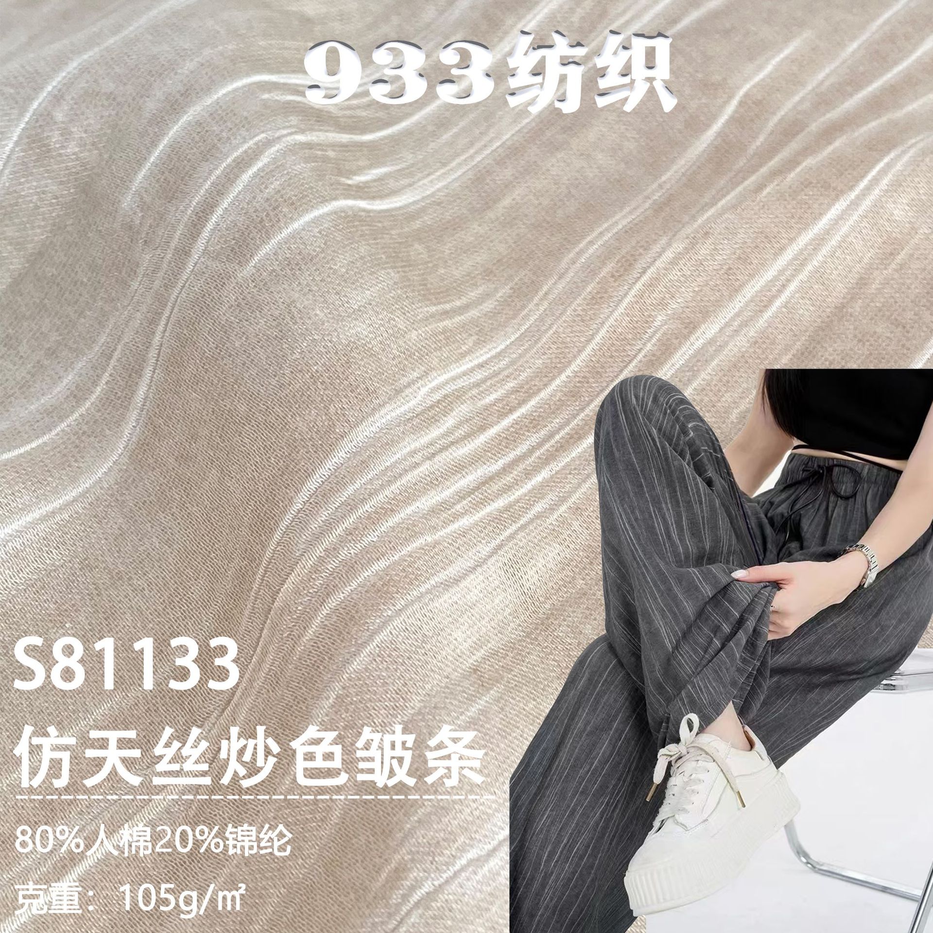 105 グラムの炒め色しわ模造テンセル生地 2 色の質感のパンツ素材新しい中国風のスーツドレス生地
