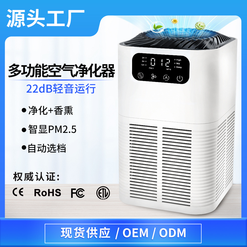 厂家供应台式香薰负离子空气净化器去异味除醛带空气检测数字显示
