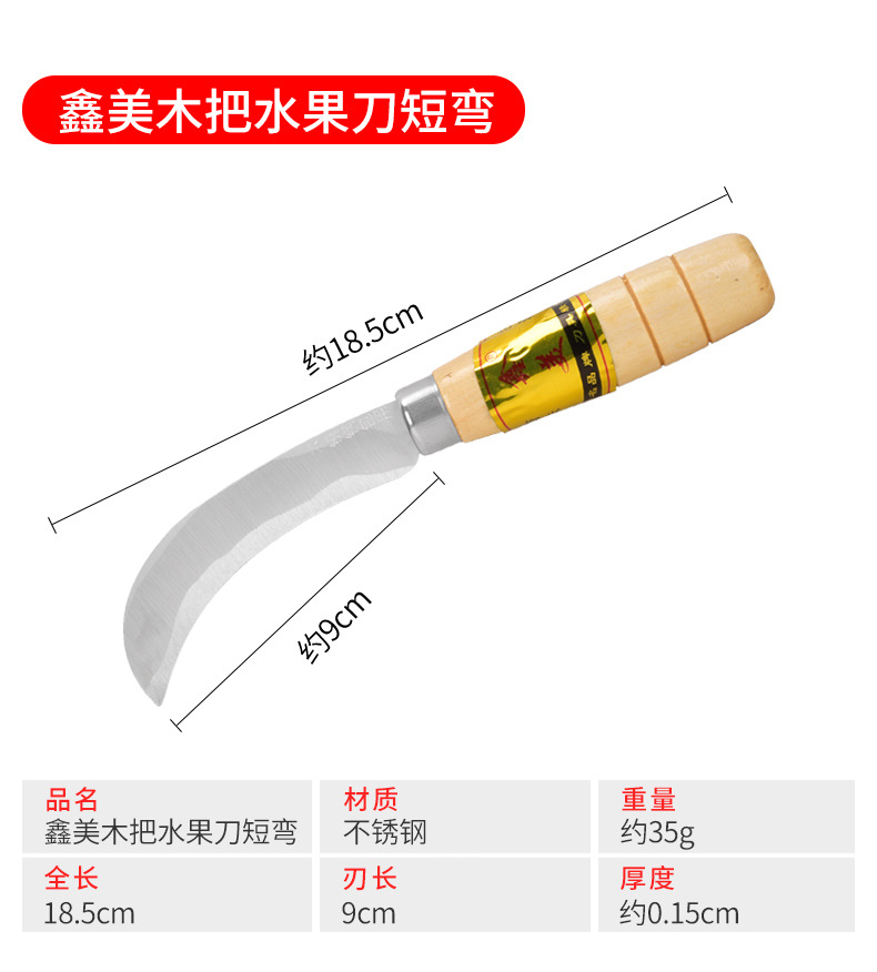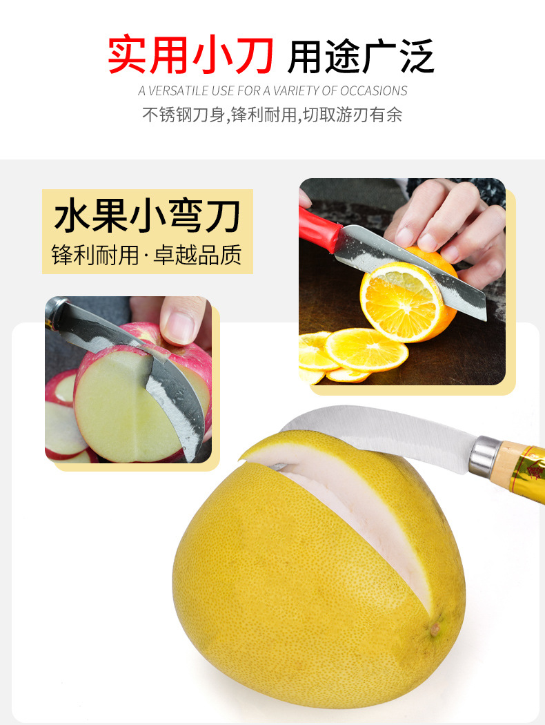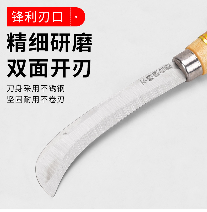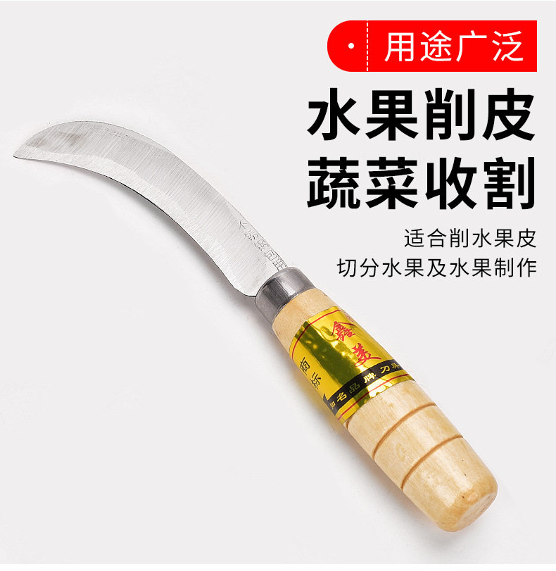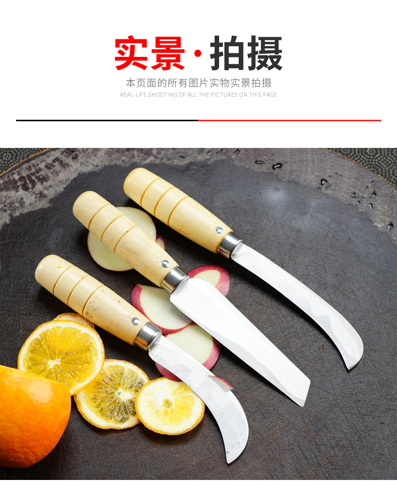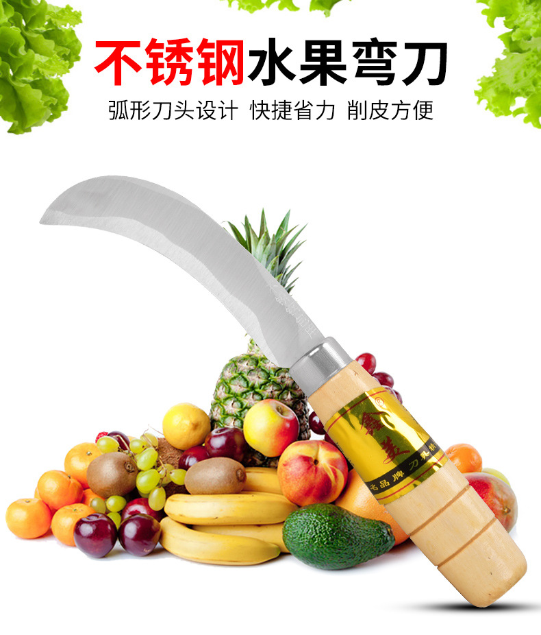 不锈钢木柄小弯刀水果刀菠萝刀香蕉刀削皮刀锋利小镰刀割菜刀具