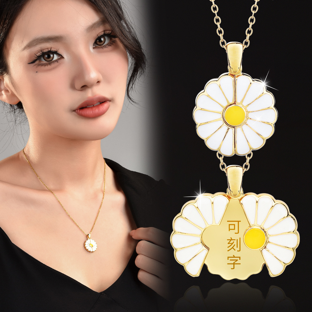 滴油の小さいデイジーのチタンの鋼のネックレスの女性はペンダントのアイデアを開けて鎖の鎖のメーカーの卸売りを開けることができます。