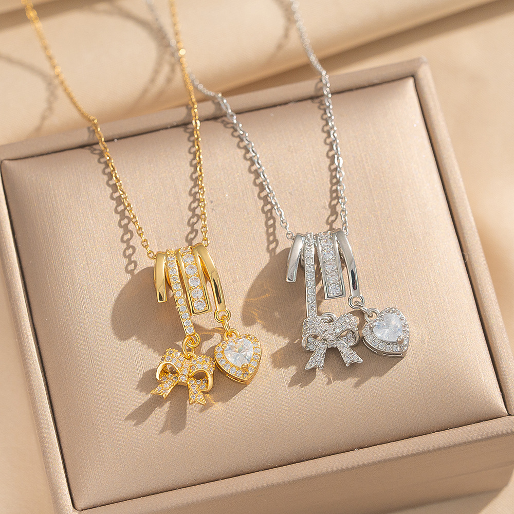 欧美蝴蝶结爱心跨境轻奢吊坠项链饰品镶钻锁骨链简约百搭颈链厂家