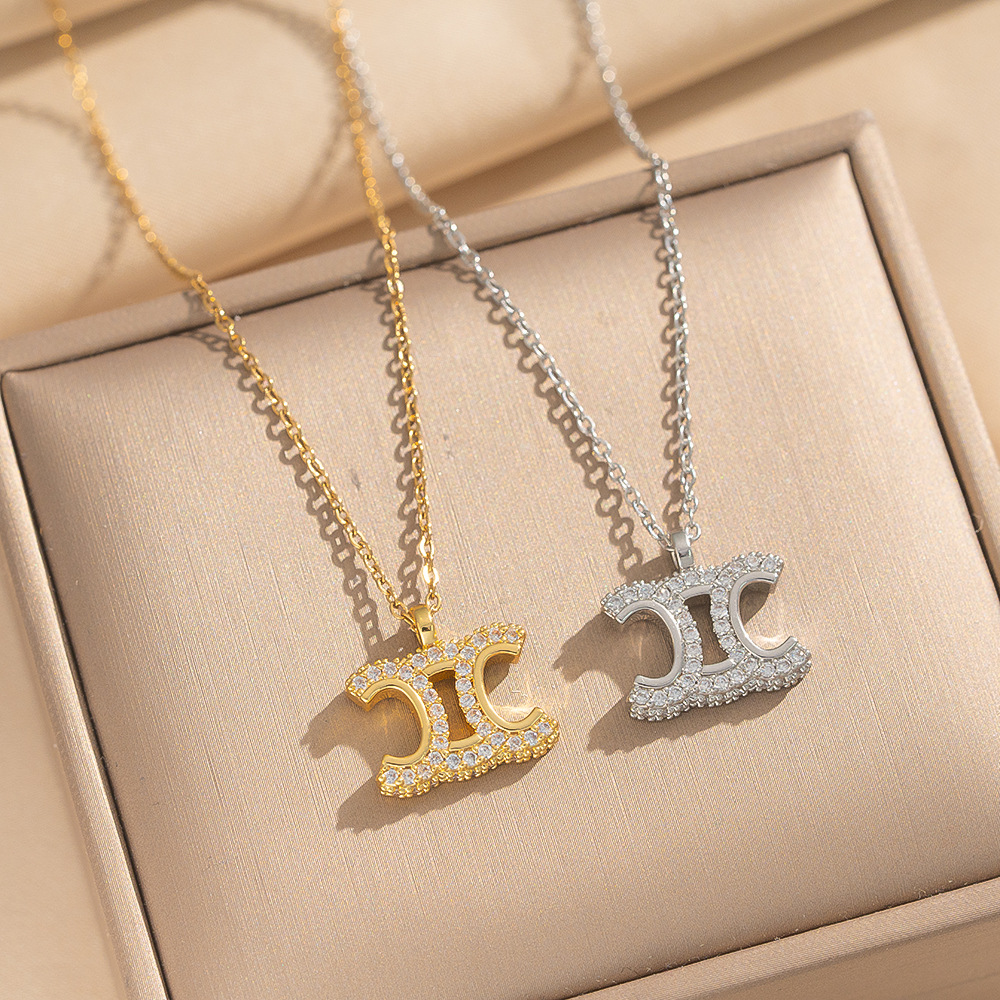 欧美跨境双C项链女款轻奢高级感凯旋门不掉色字母钛钢锁骨链精致