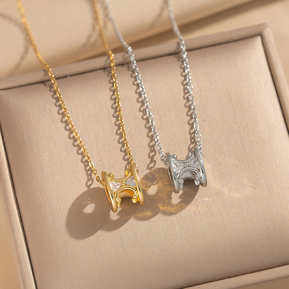 跨境新款凯旋门小蛮腰轻奢款时尚气质华丽满钻项链女百搭钛钢