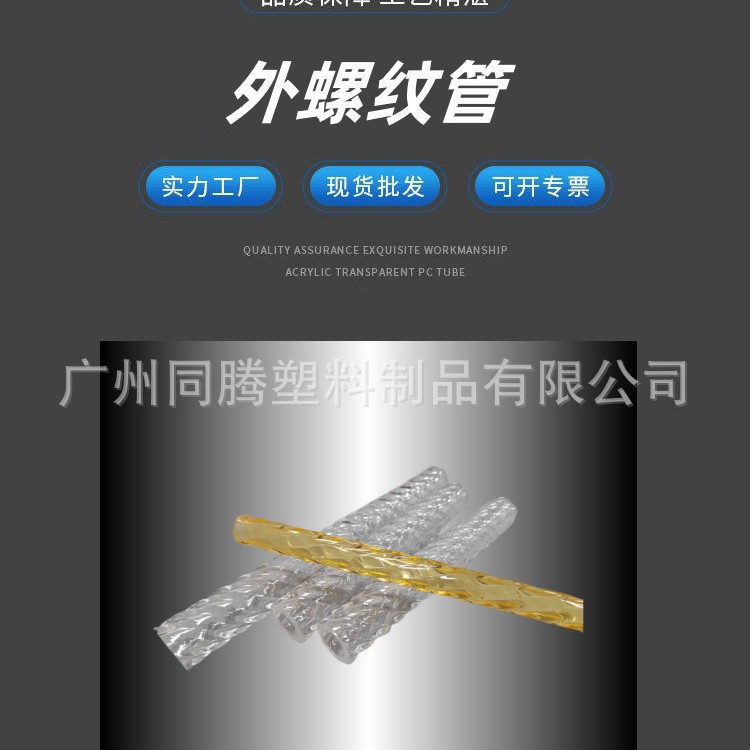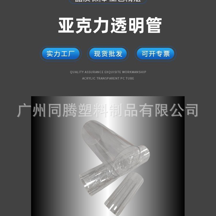 广州同腾塑料制品有限公司是一家专业从事亚克力(PMMA)、PC等塑料制品研究与开发的生产厂家,主要生产灯饰塑胶配件,即有机玻璃(PMMA)、聚碳酸脂(PC)挤出管材,有机玻璃(PMMA)浇铸管材,有机玻璃棒材以及加工有机玻璃制品。