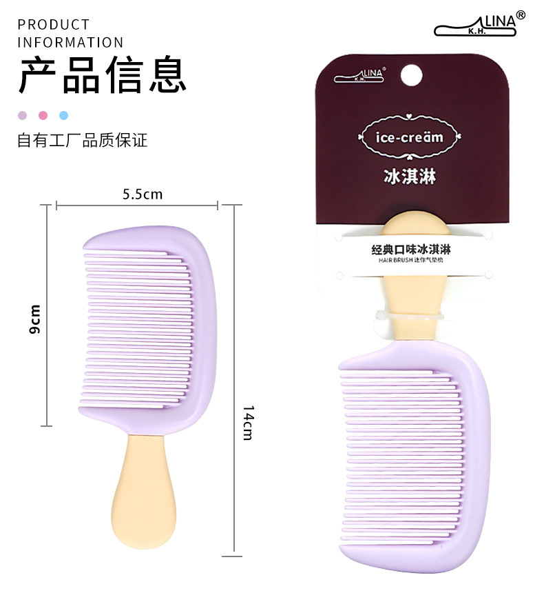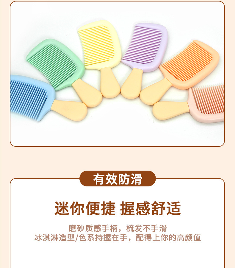 高颜值冰淇淋防静电小号中齿儿童梳子加厚耐用家用便携式口袋梳子