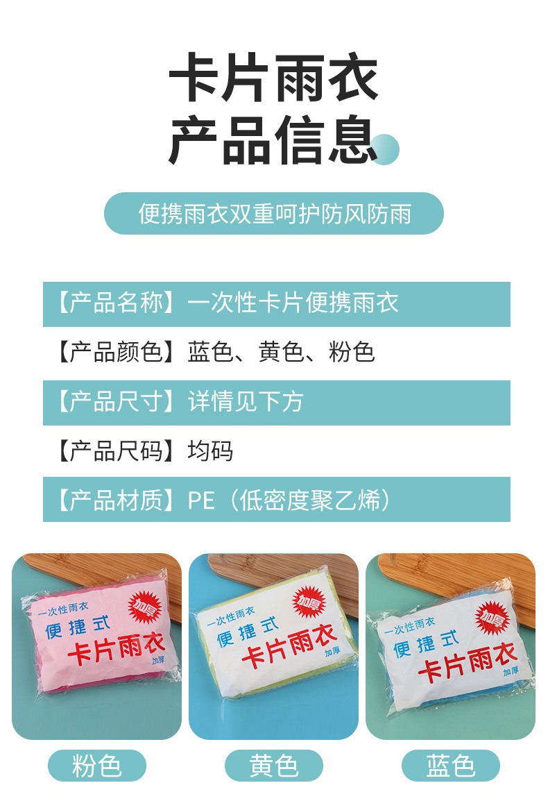 工場直売の新型ポケットカード式使い捨てレインコート屋外ラフティング旅行の成人児童の厚さは平均的である