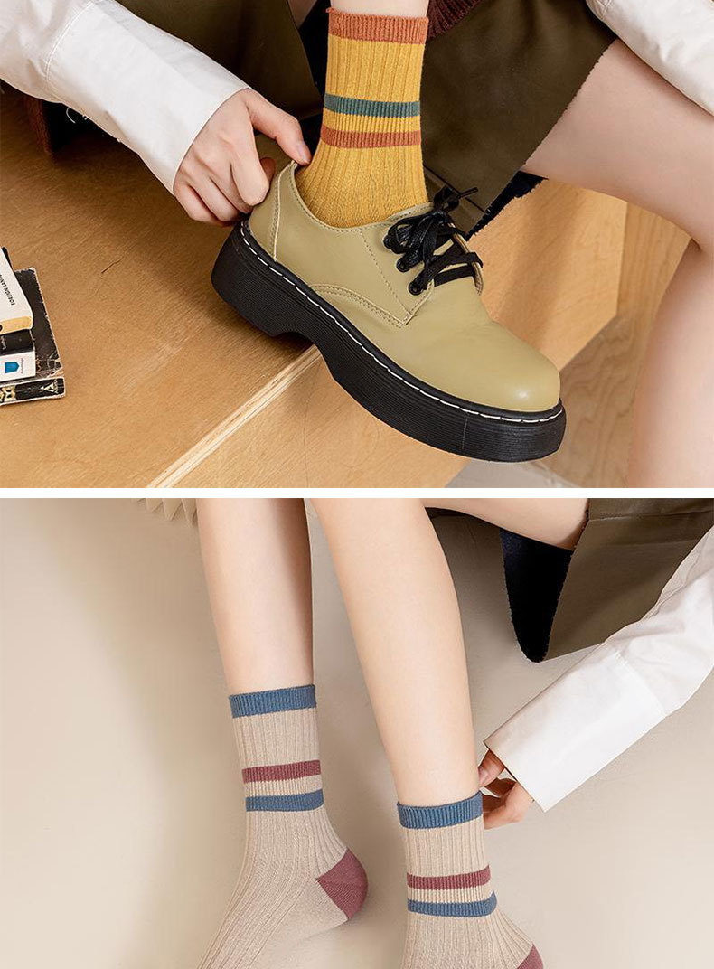 秋冬袜子女复古风条纹中筒袜新款百搭显瘦堆堆袜休闲防滑长筒袜子