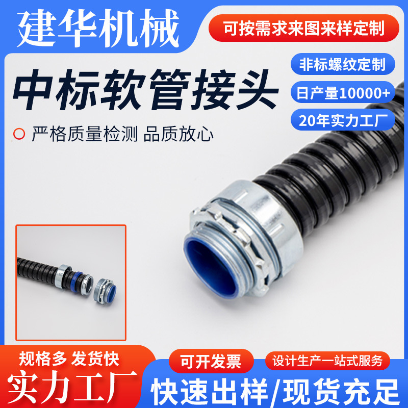国标包塑金属软管接头六角镀锌镀铬箱接式穿线蛇皮管外丝电线双头