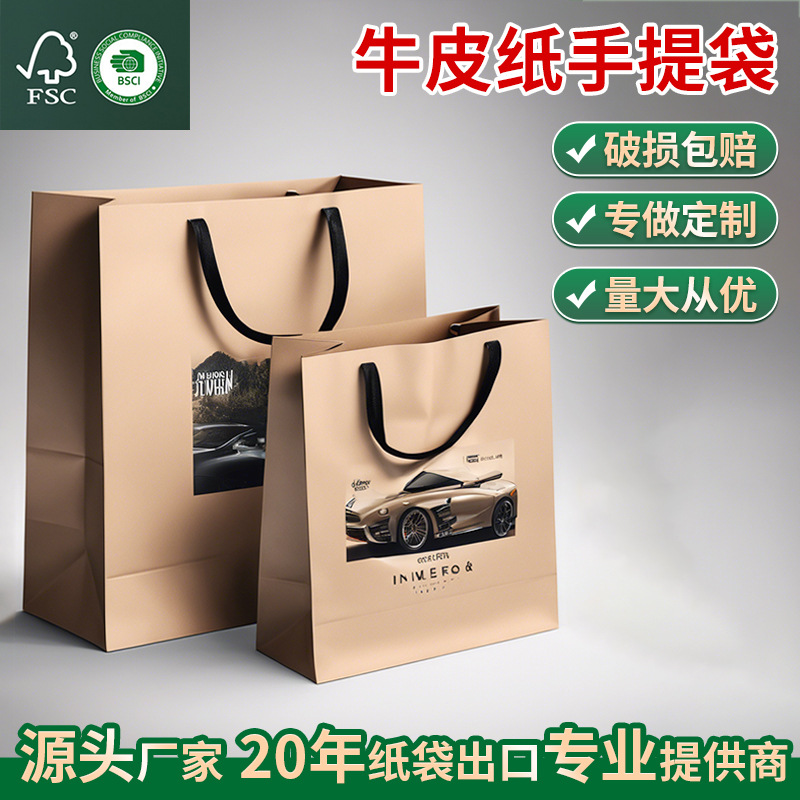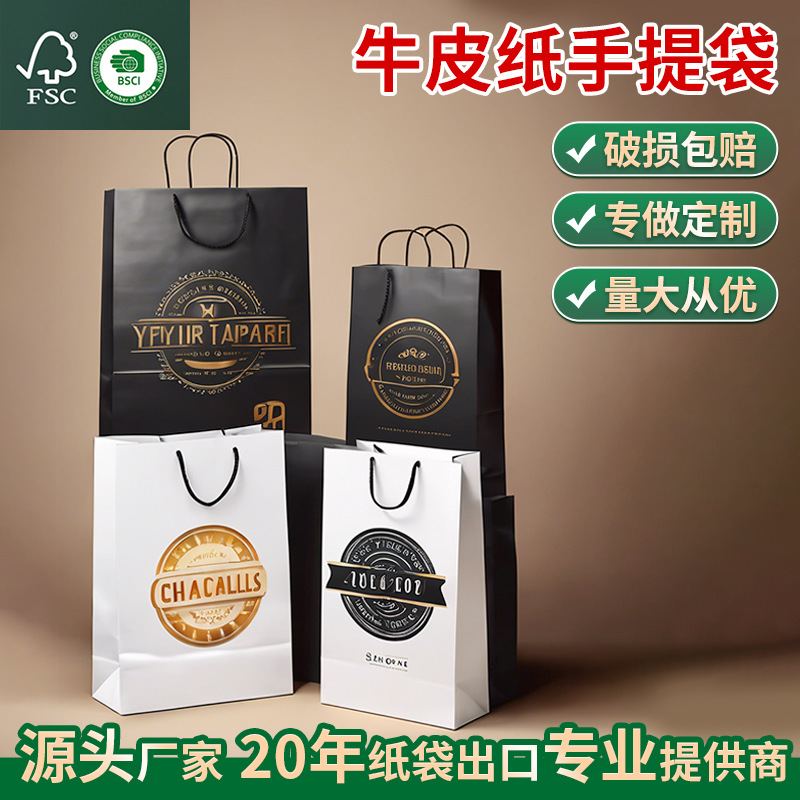 FSC 紙袋クラフト紙袋衣類ハンドバッグ空白ギフトバッグメーカー卸売在庫印刷可能