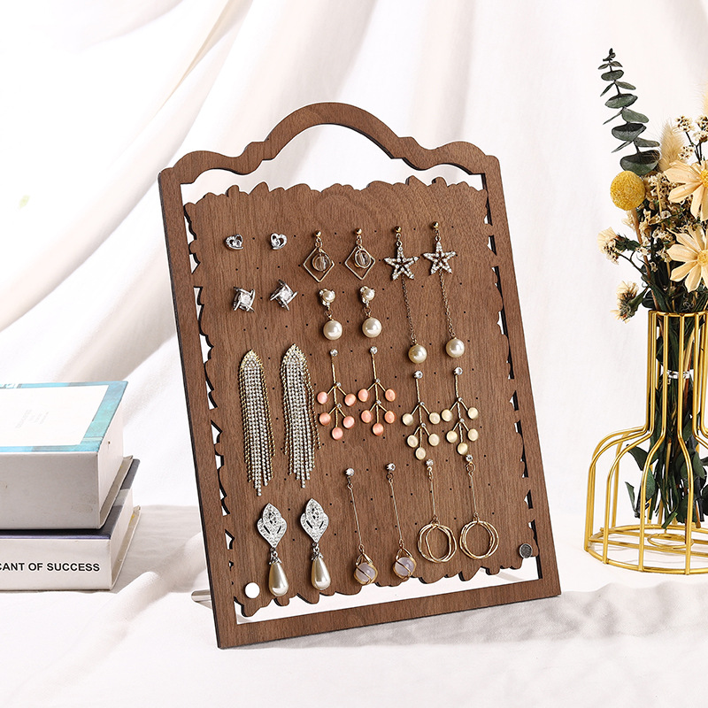 胡桃木合板复古耳环架家用收纳首饰架挂耳饰耳钉架摆摊饰品展示架