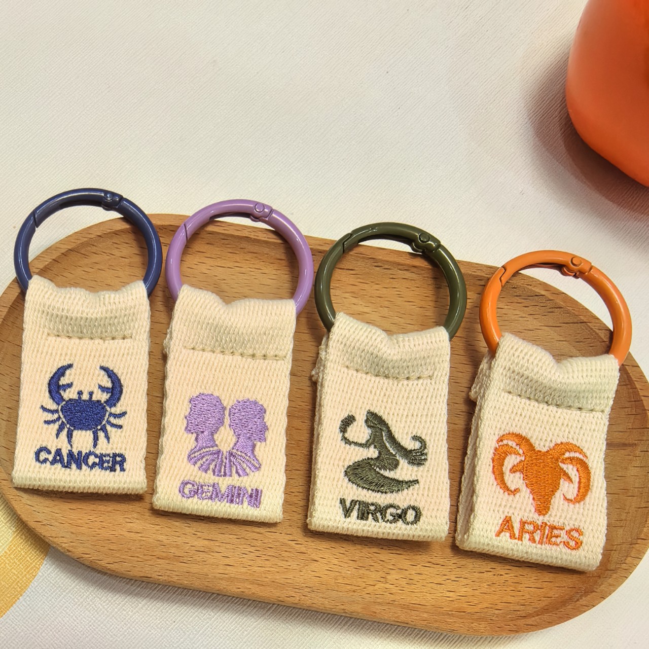 卸売りの新型の星座のリボンのキーホルダーの学生の簡単な布芸の刺繍の装飾の包みの小さい掛け物の携帯電話の装飾