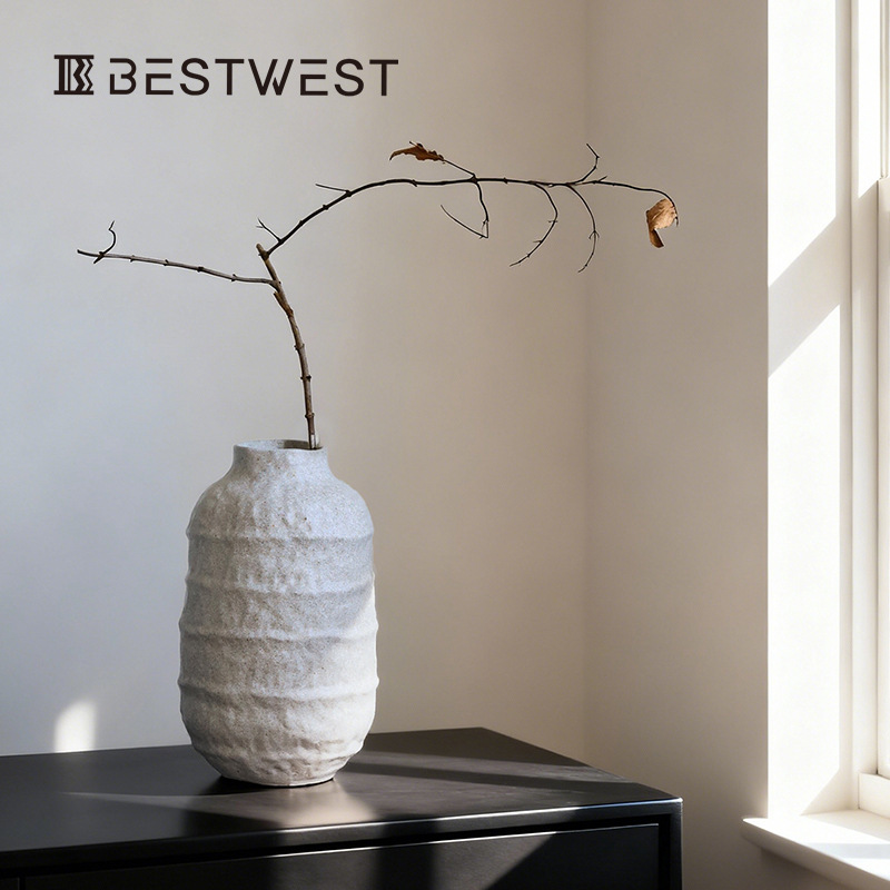 Best west大腹陶磁器花瓶創意デスクトップ置物中国式レトロ食卓ドライフラワー生け花器