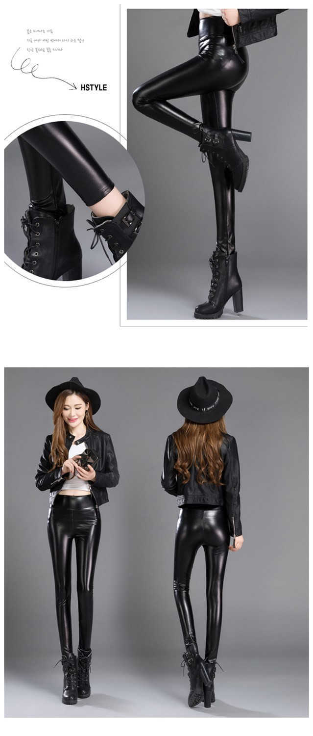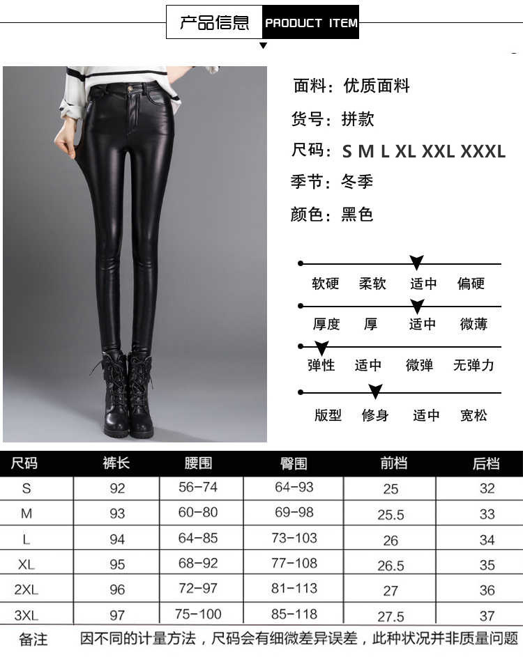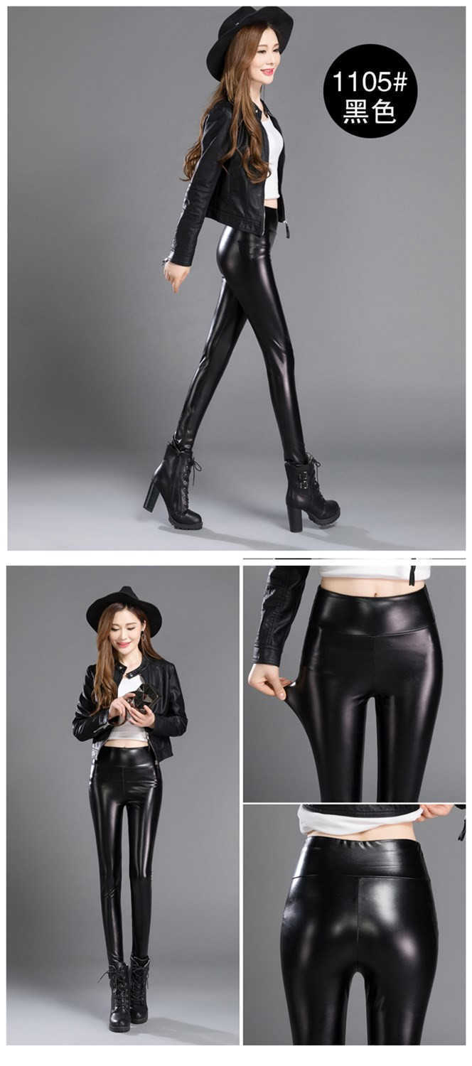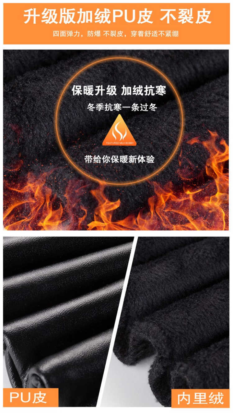 皮裤女加绒加厚高腰弹力秋冬季大码修身显瘦小脚裤女士外穿打底裤