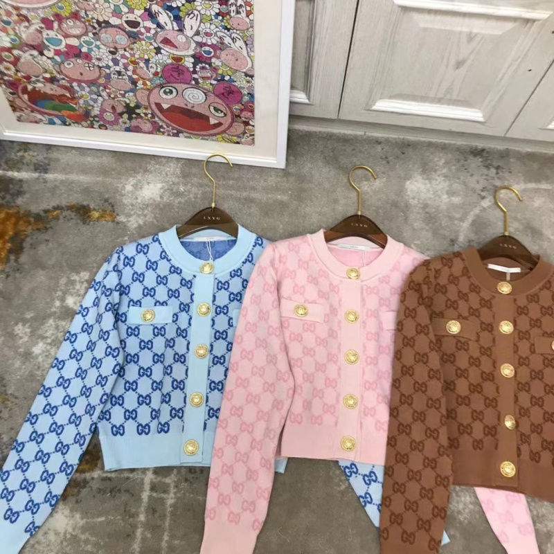 感名媛気質小香風長袖コート女性金属ボタン短い上着アルファベット丸襟ニット2024
