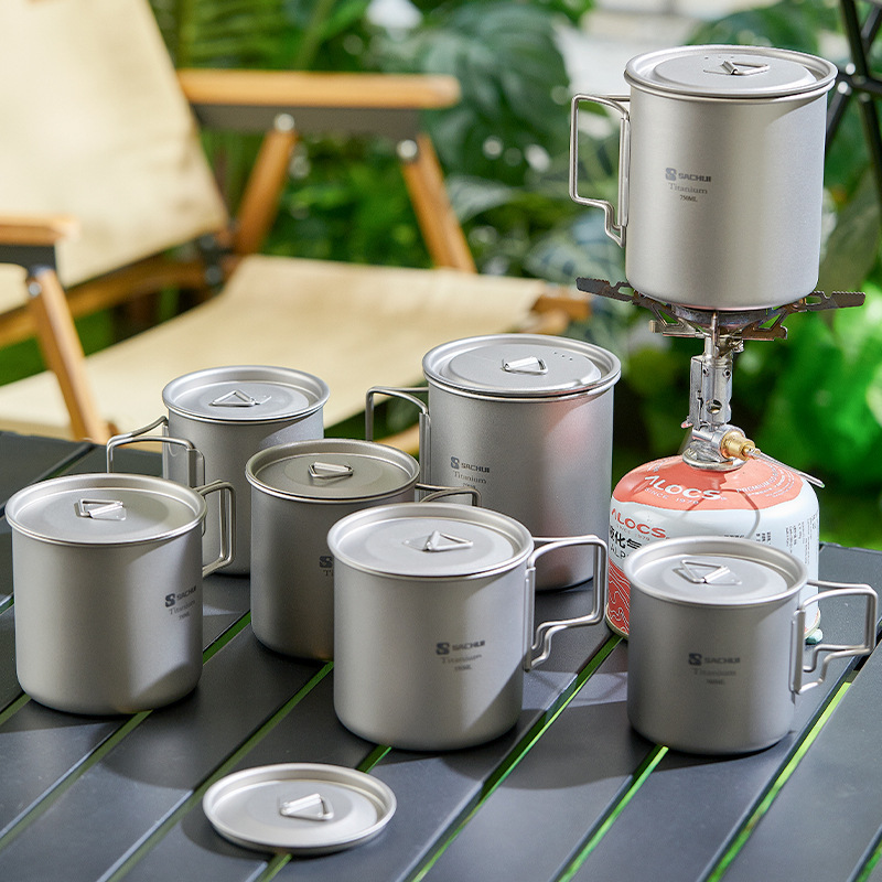 屋外チタンカップ純チタンマグカップキャンプ携帯カップコーヒーカップチタン金属キャンプ折り畳みカップセット