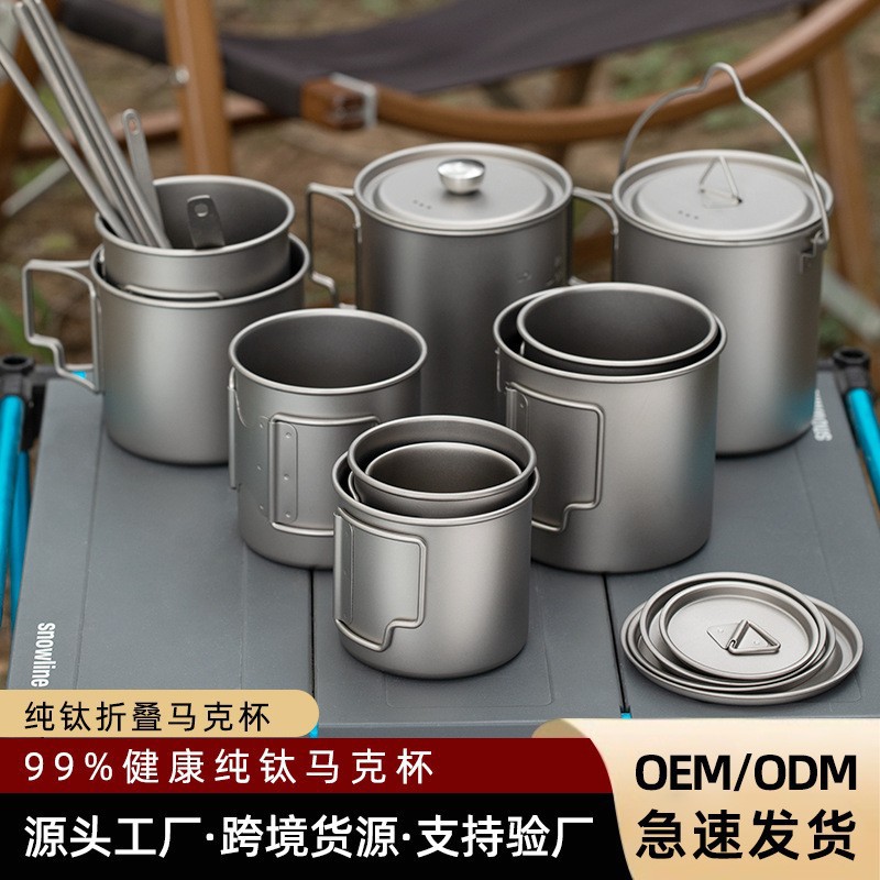 屋外純チタン水杯キャンプ携帯チタン合金カップ旅行折り畳みマグカップ食器チタンカップビールグラス