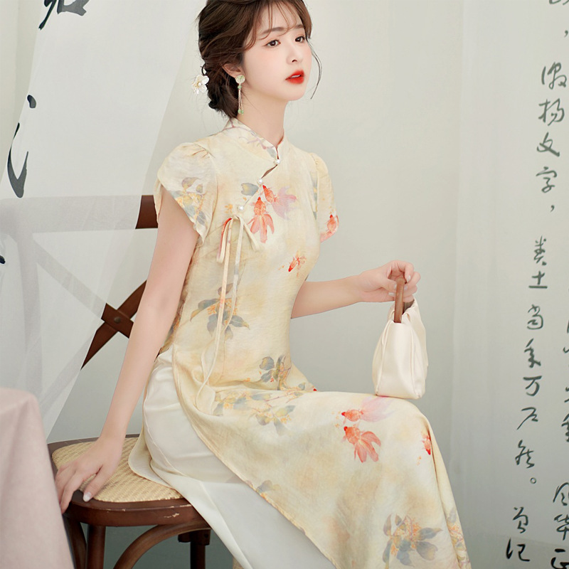 2024夏の新型半袖中国式優雅で綺麗なチャイナドレスのワンピース