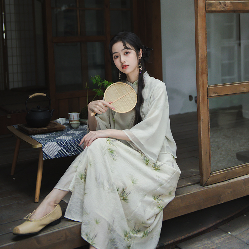 2024ファッション夏の新型仙気優雅禅意女装夏改良チャイナドレス上着新中国式国風セット