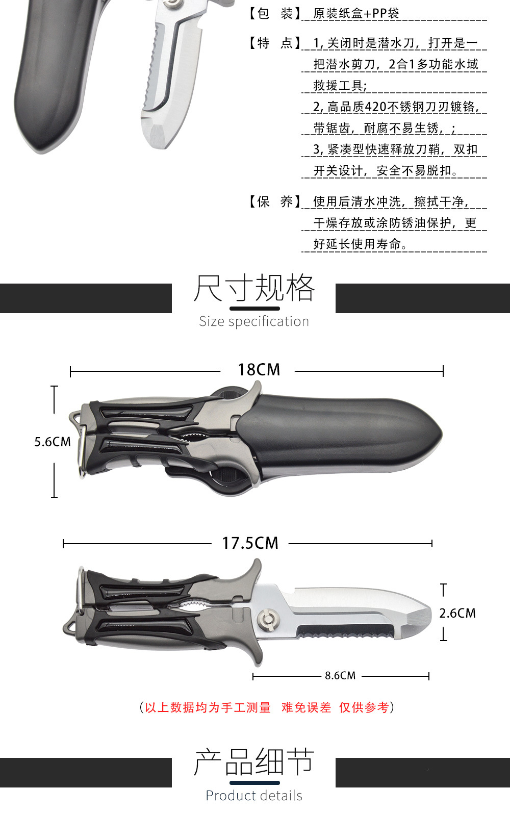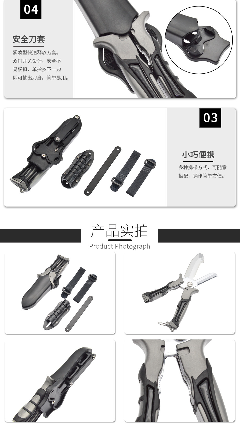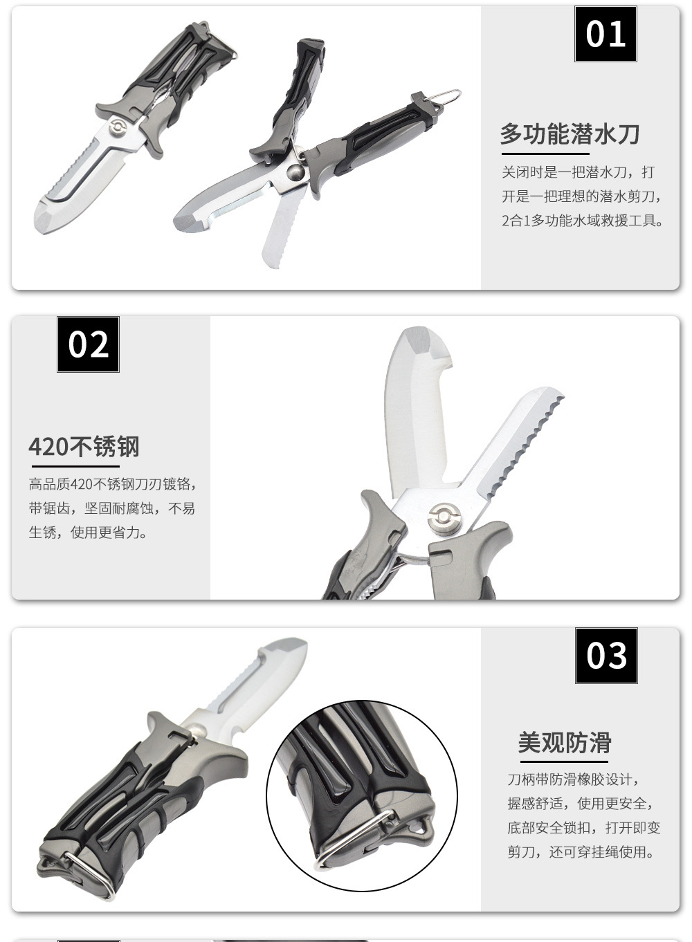 潜水ハサミ2合1技術潜水員専用水域救助救命ナイフ切断ロープ切断ツール