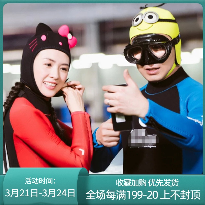 パンダ小悪魔男女児童アニメ潜水帽冬水泳浮潜日焼け止め水中保温ヘッドカバー3mmヘアバンド