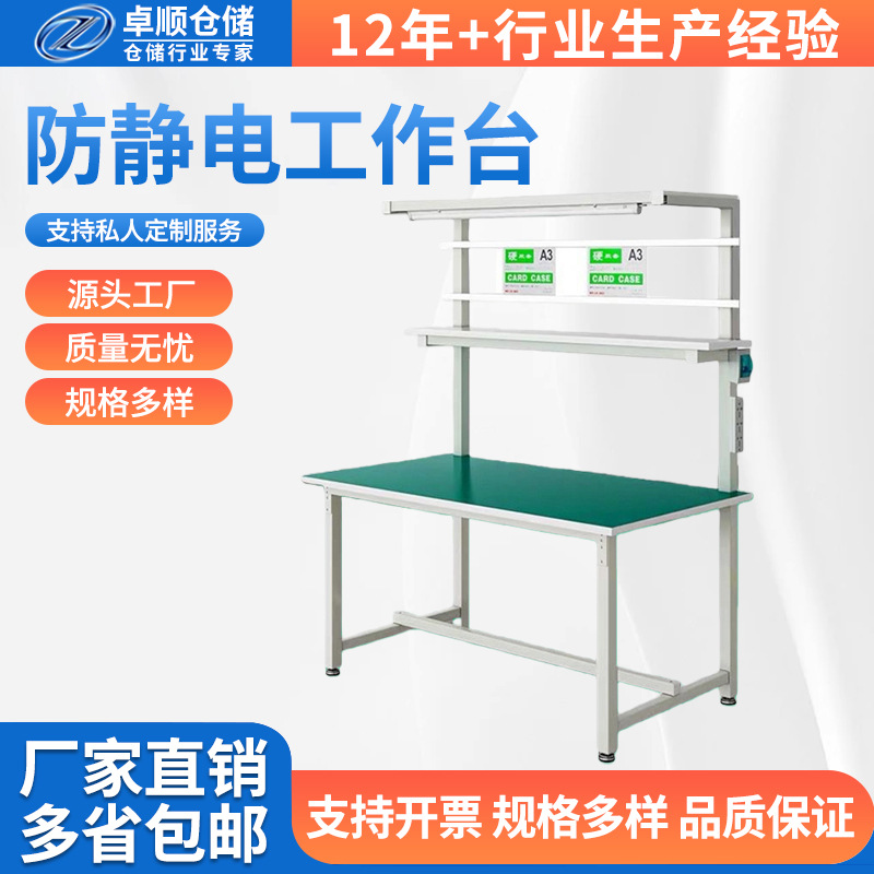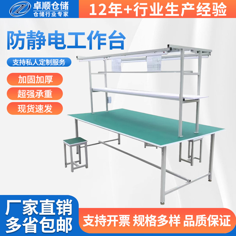 工場静電気防止作業台ランプ付き作業台二重検査テーブル工場梱包台金物修理包装台