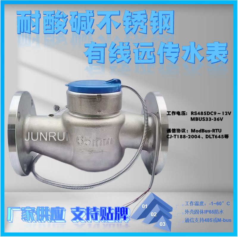 ステンレス縦型遠伝水道メータは、MODBUS-RTUまたはCT/188プロトコルコピー、12/24Vをサポートしています