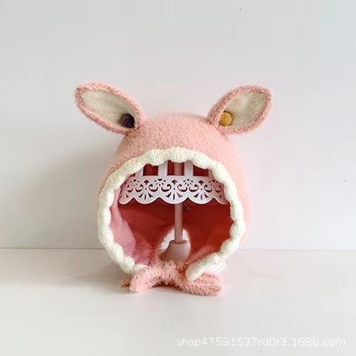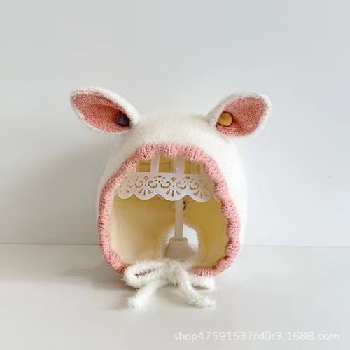 女宝宝帽子秋冬季保暖加厚针织奶嘴护耳帽女儿童防风公主毛线帽韩