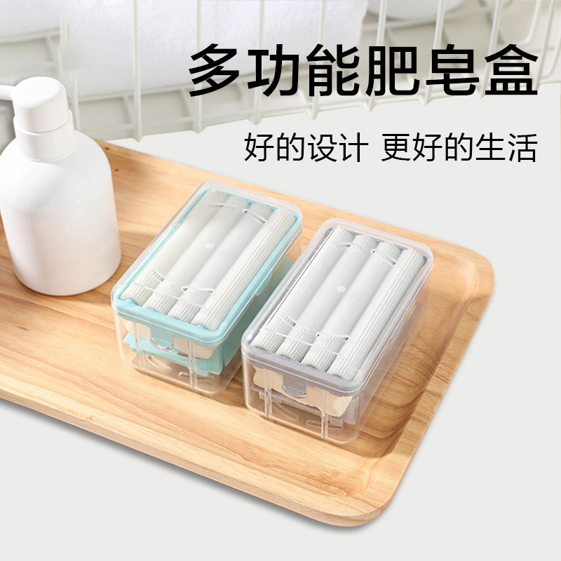 滚轮肥皂起泡器盒多功能家用沥水收纳带盖免手搓洗香皂盒学生宿舍